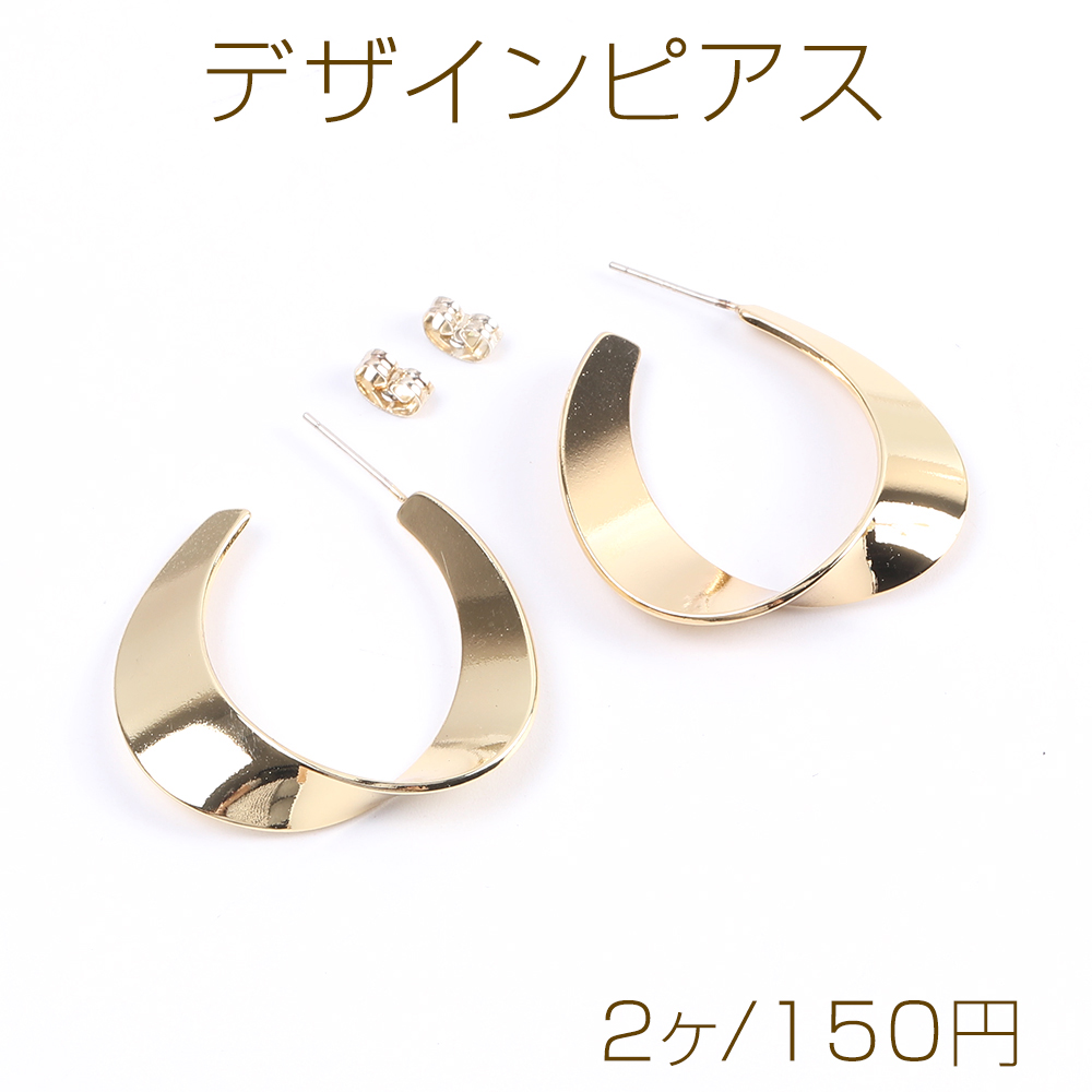 高品質デザインピアス ツイストフープ 33×33mm ゴールド(2ヶ)