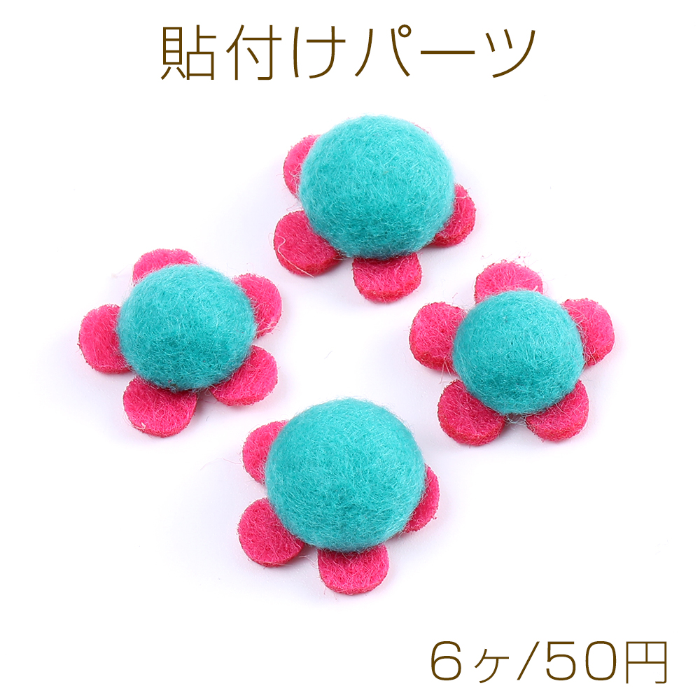 貼付けパーツ フラワー 21mm ブルー(6ヶ)