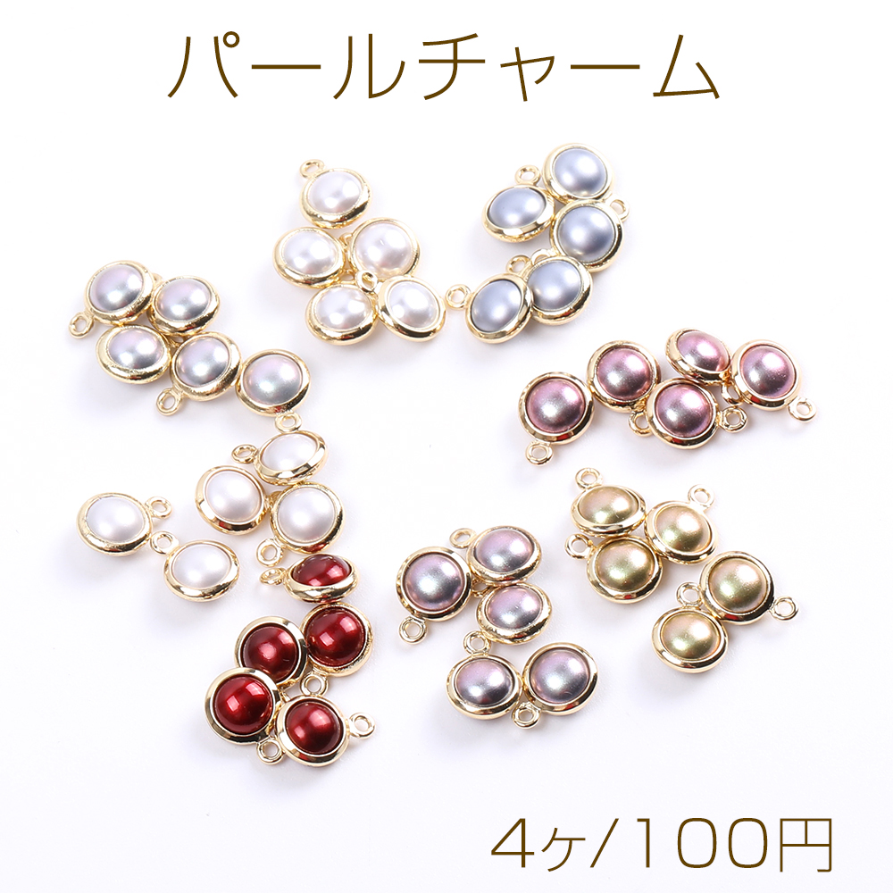 高品質パールチャーム ラウンド 7mm カン付き ゴールド(4ヶ)