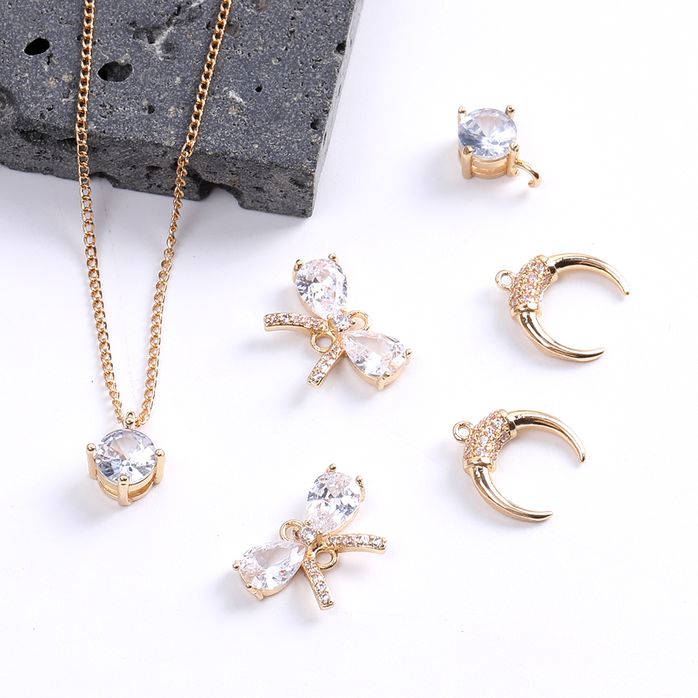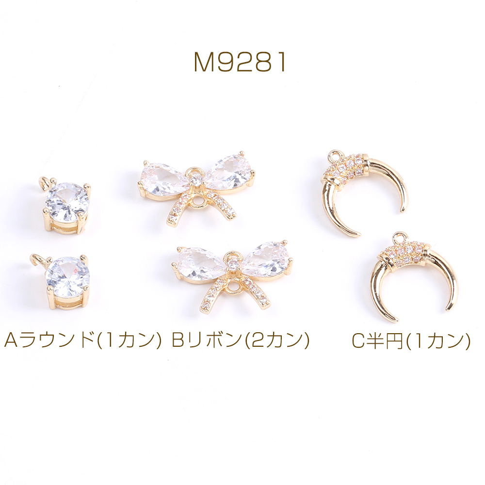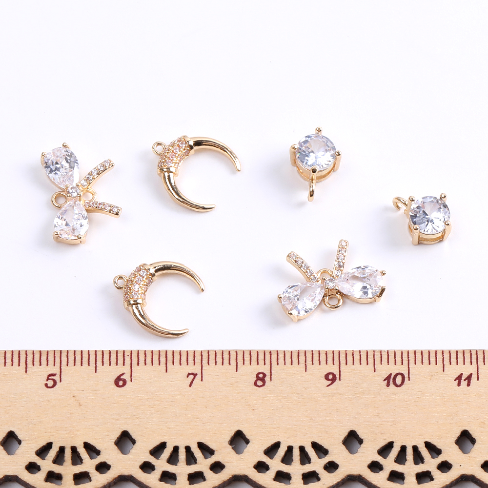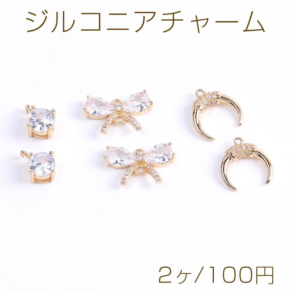 高品質ジルコニアチャーム 全3種 ゴールド クリスタル(2ヶ)