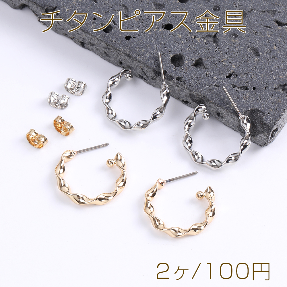 高品質チタンピアス金具 ツイストフープピアス 21mm(2ヶ)