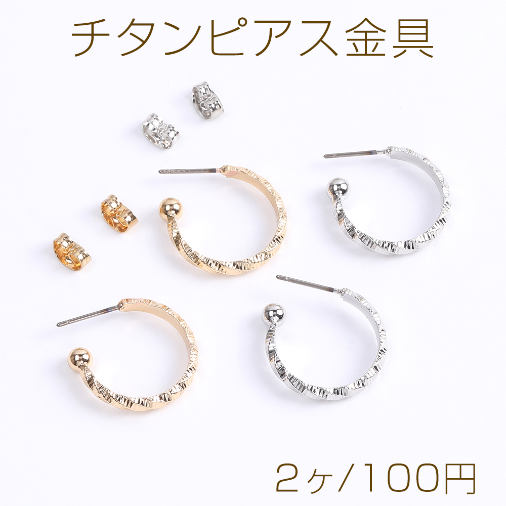 高品質チタンピアス金具 ツイストフープピアス 19mm(2ヶ)