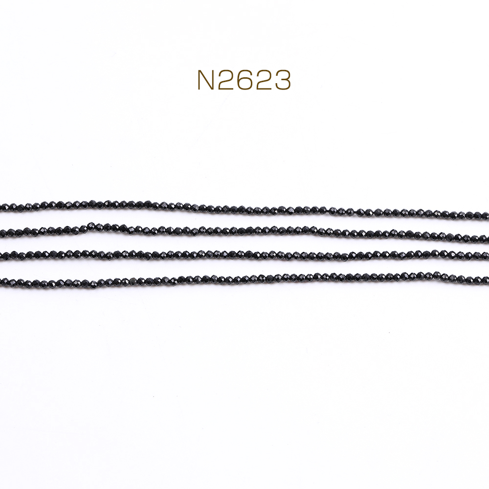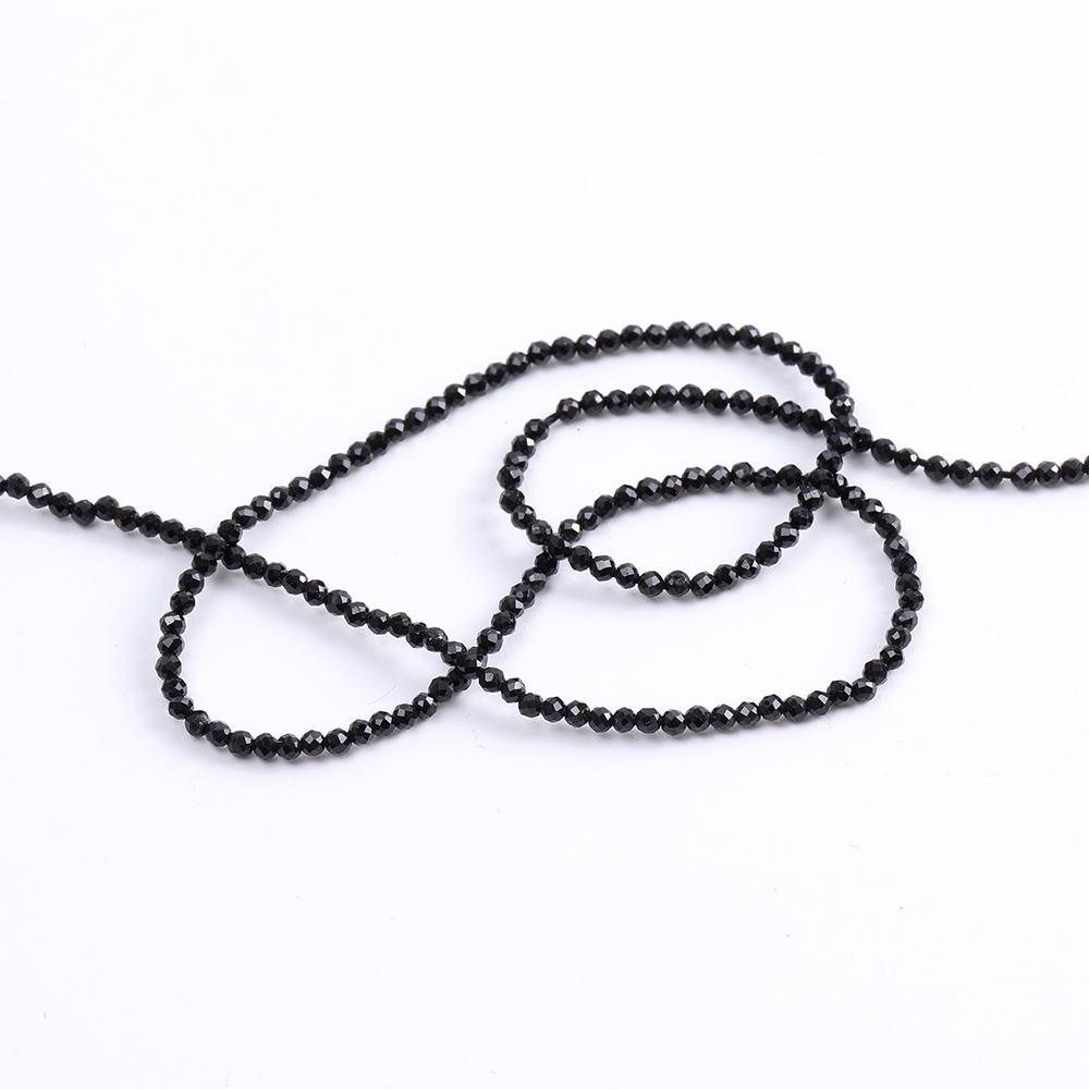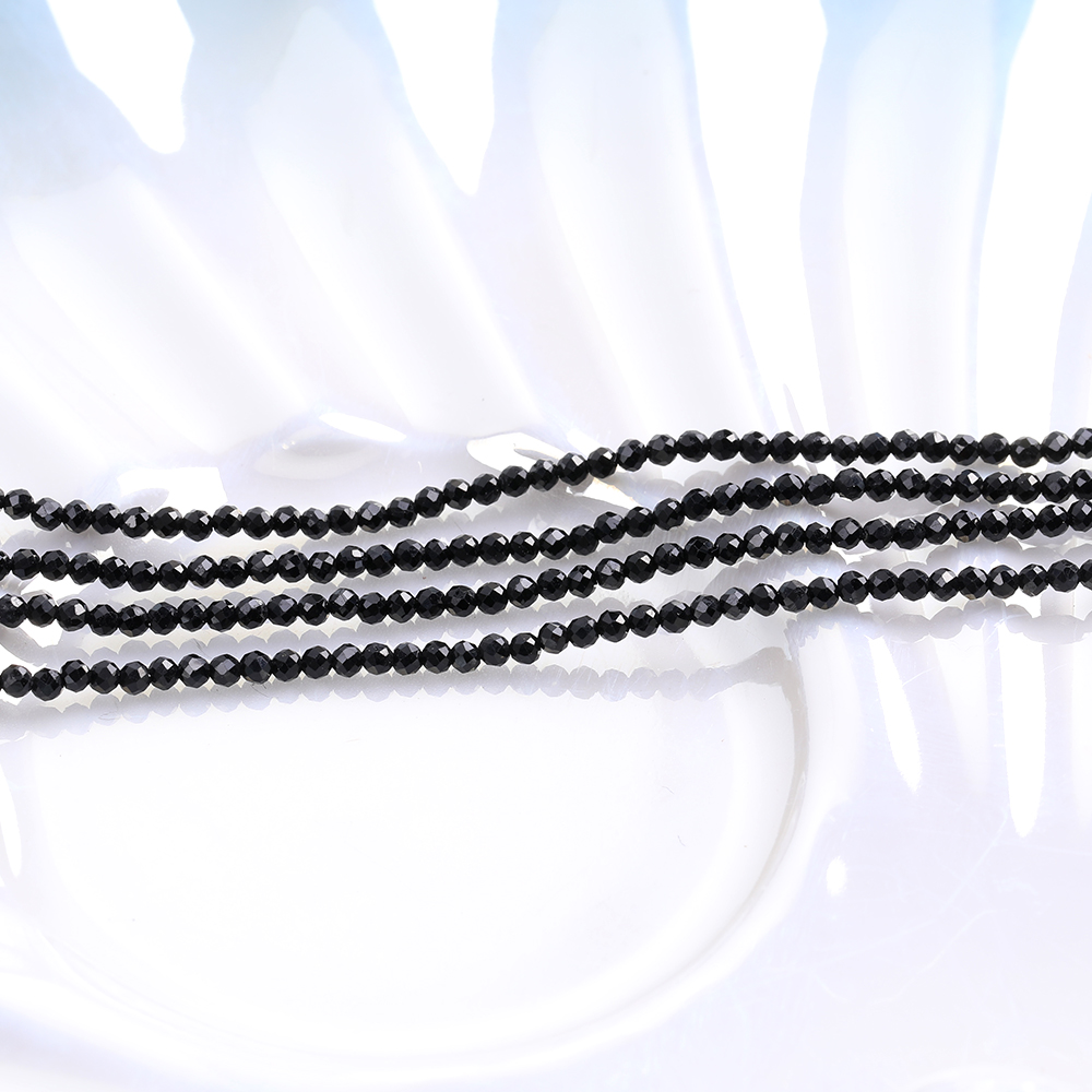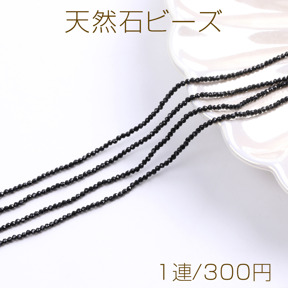 天然石ビーズ ブラックトルマリン ラウンドカット 2mm 1連(約225ヶ)