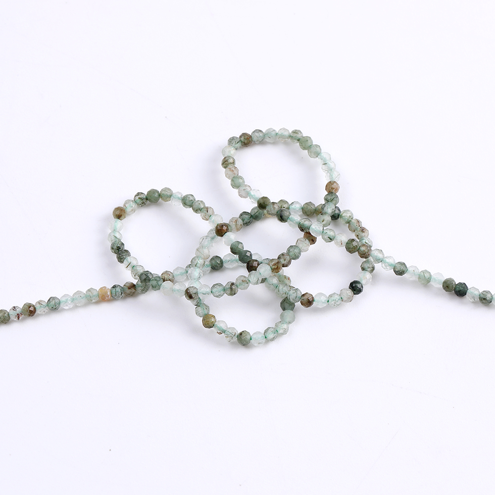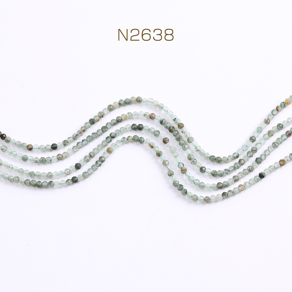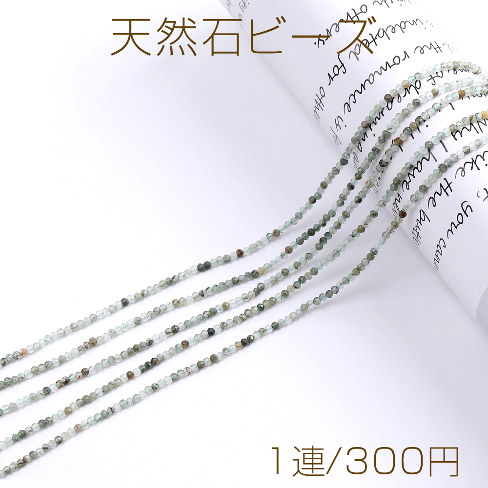 天然石ビーズ グリーンルチルクォーツ ラウンドカット 2-2.2mm 1連(約190ヶ)
