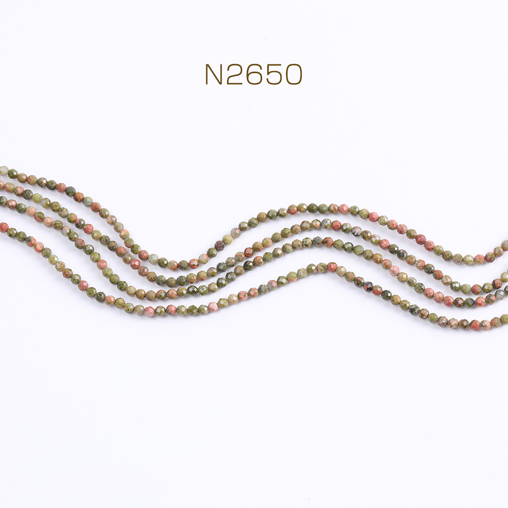 天然石ビーズ ユナカイト ラウンドカット 2-2.5mm 1連(約160ヶ)