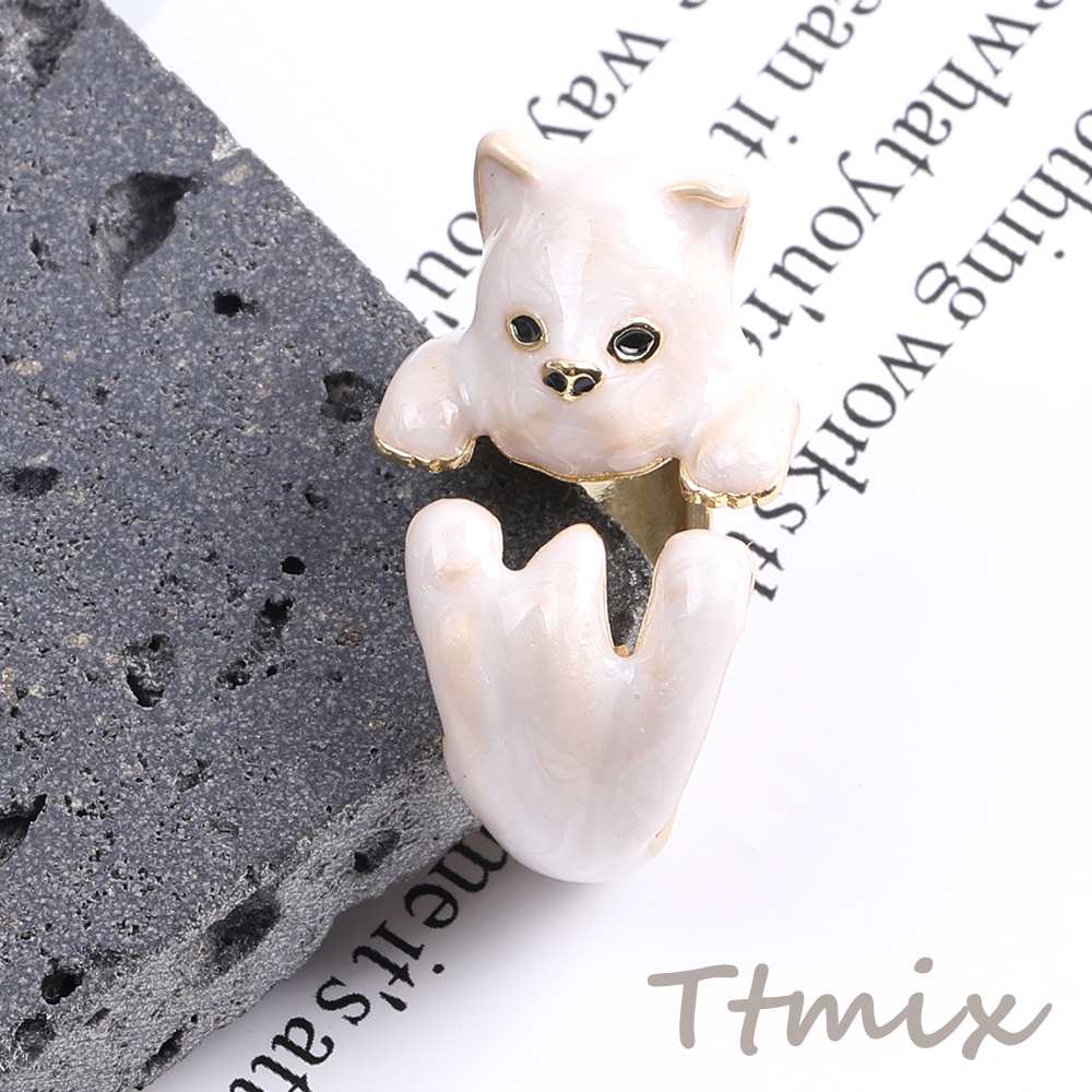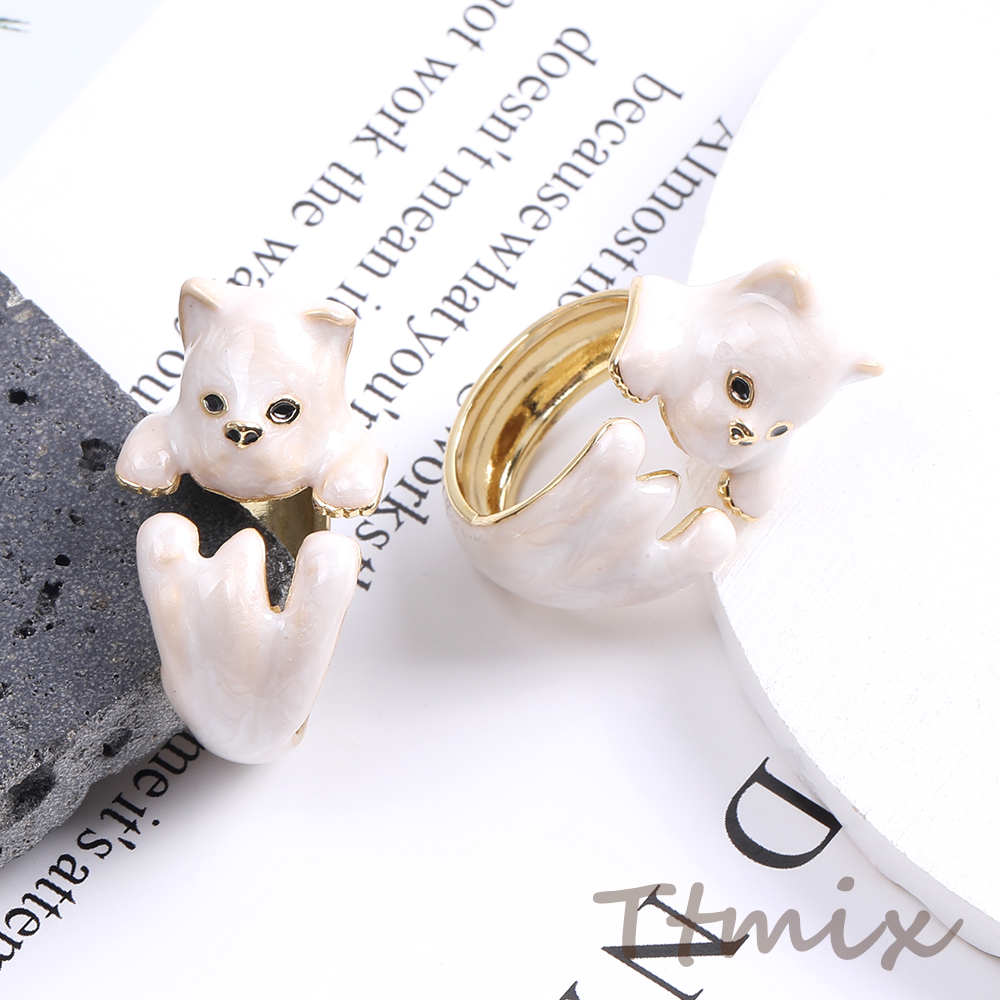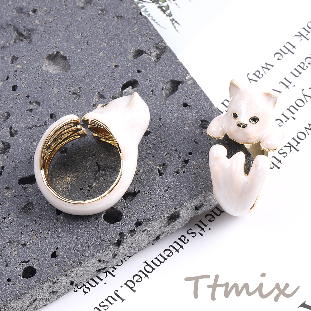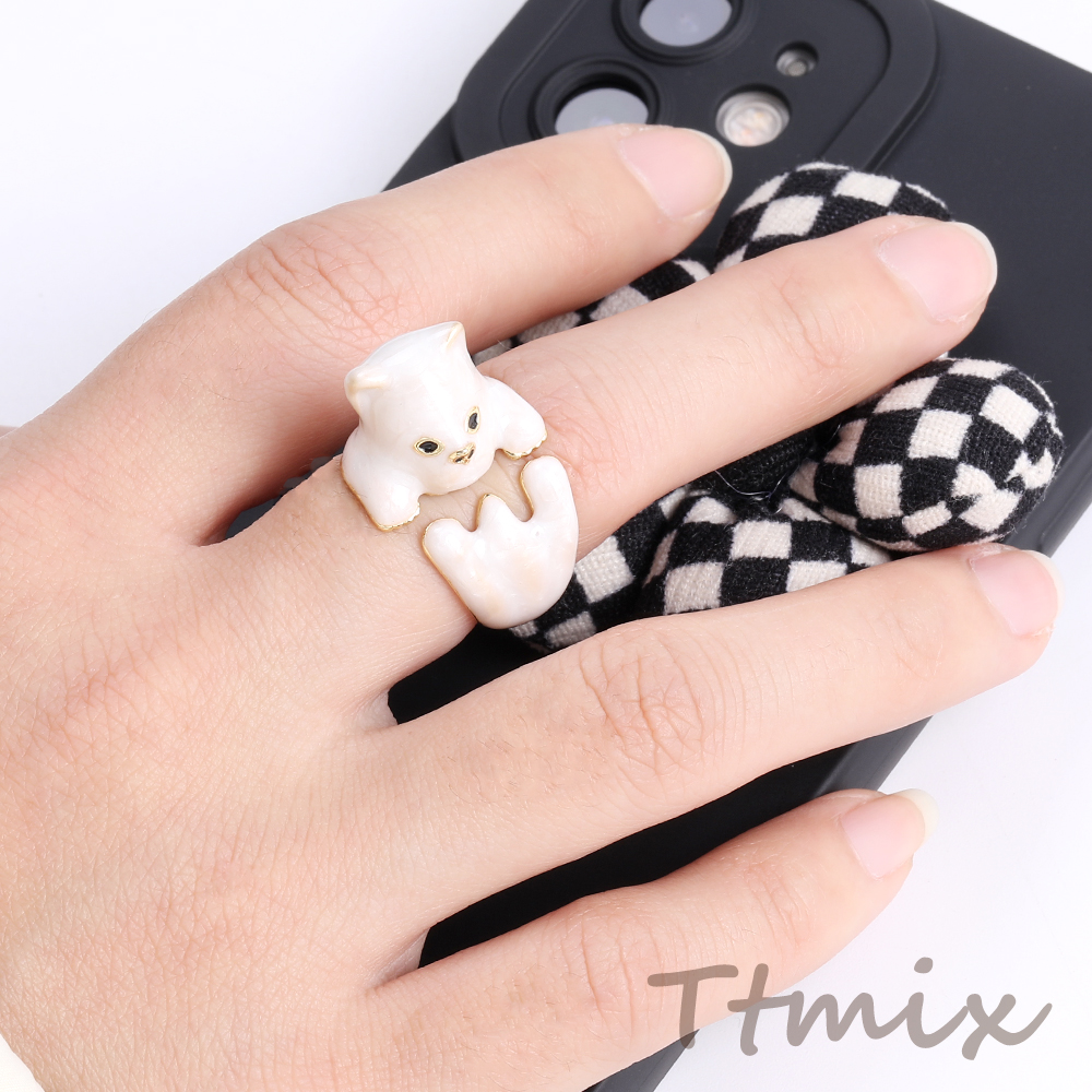 高品質デザインリング 指輪 エポ付きリング 猫 幅約17mm ゴールド ホワイト(1ヶ)