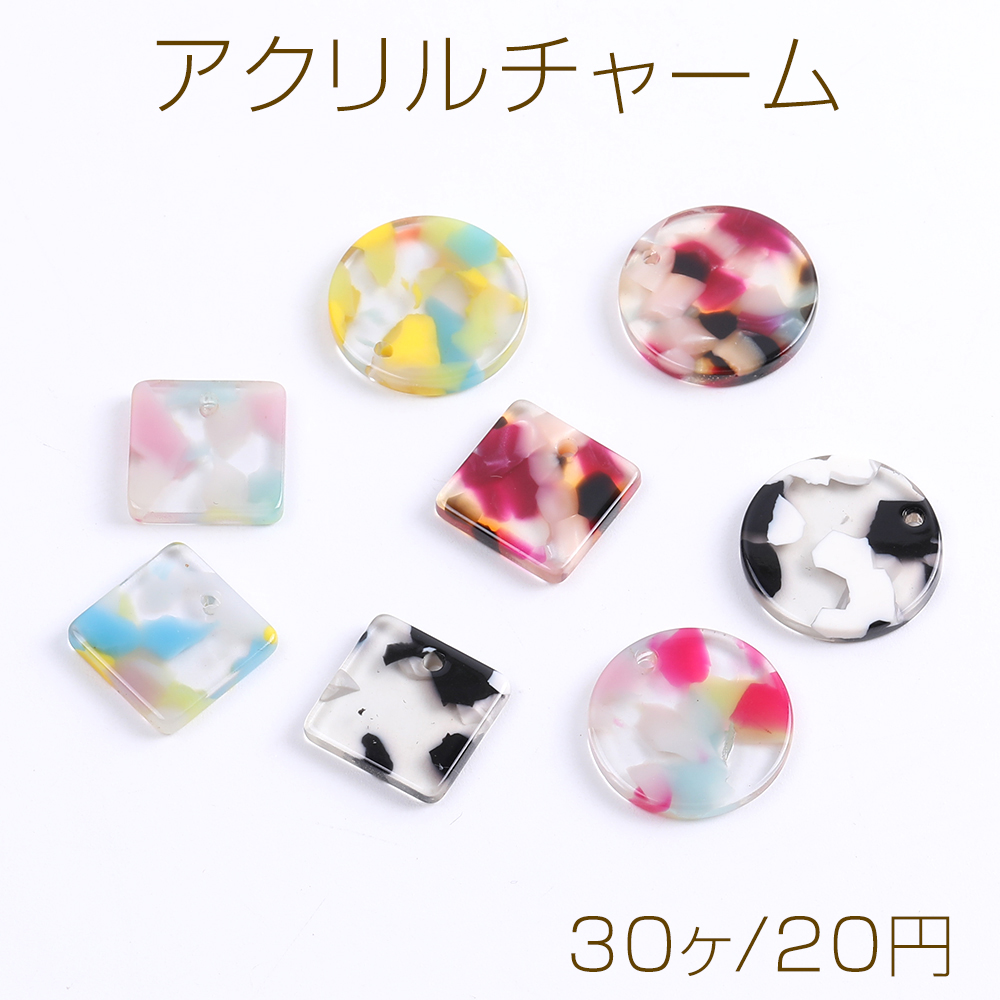 アクリルチャーム スクエア型 ラウンド ミックスカラー