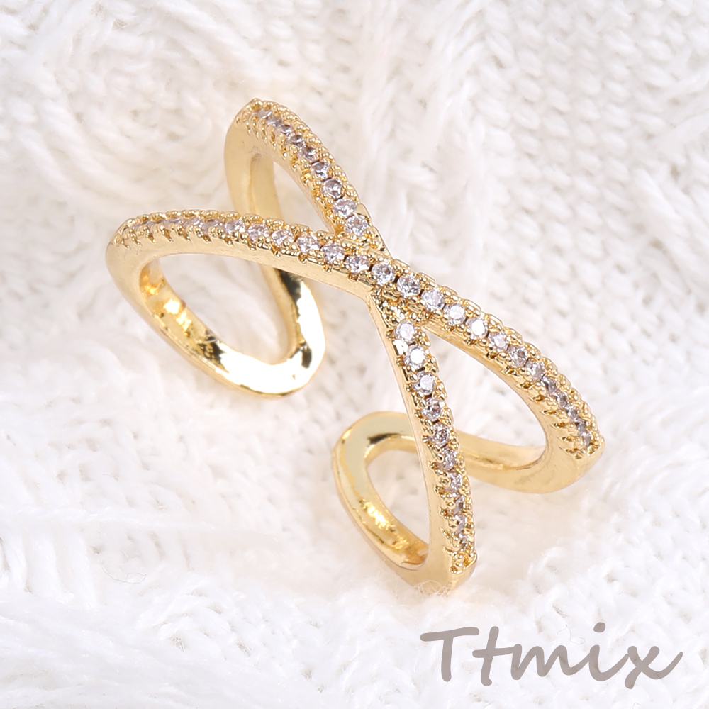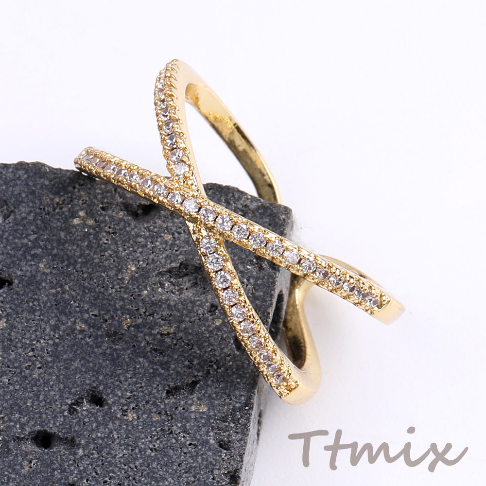高品質デザインリング 指輪 ジルコニアリング 幅約10mm ゴールド(1ヶ)