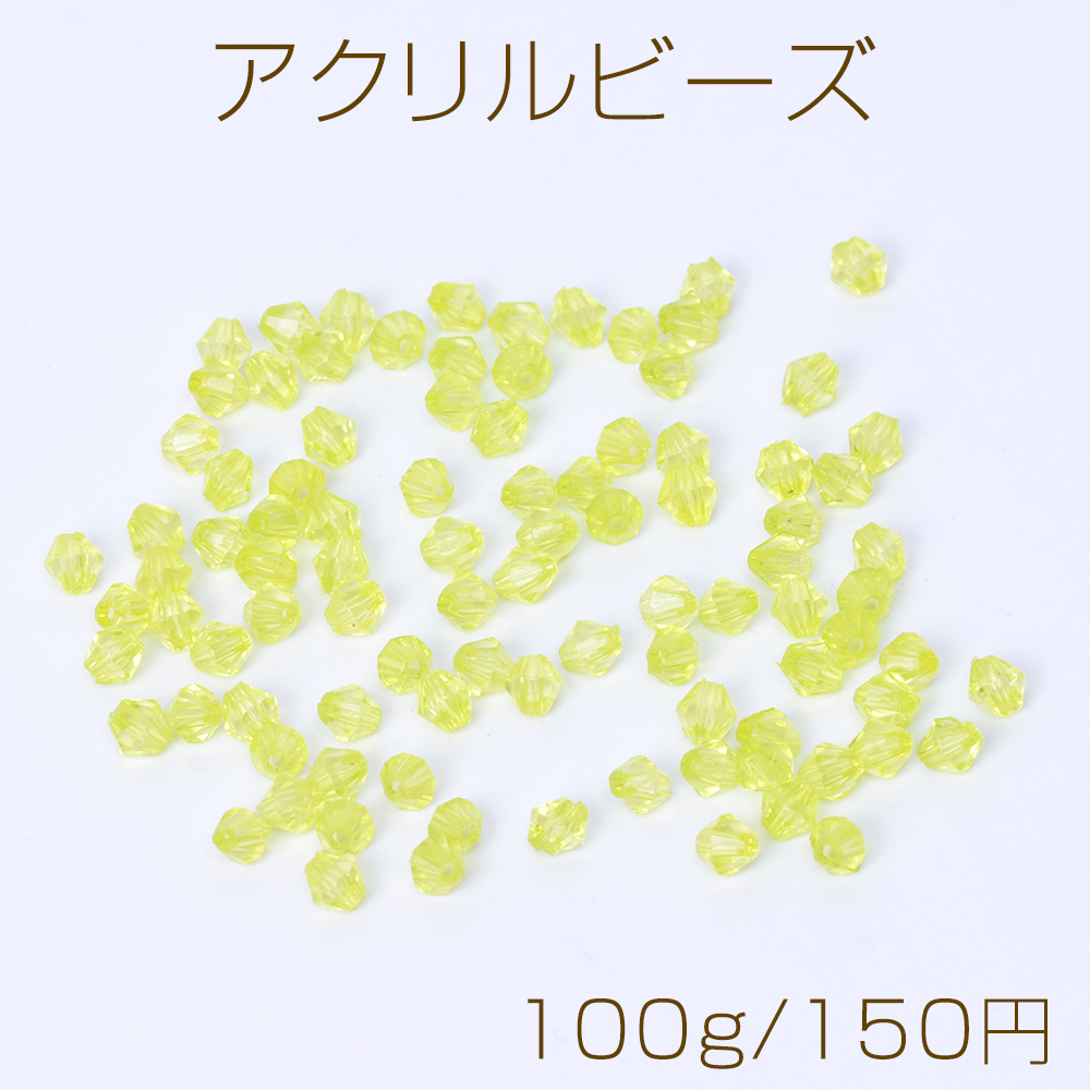 アクリルビーズ ソロバンカット 4mm イエロー 100g(約3980ヶ)