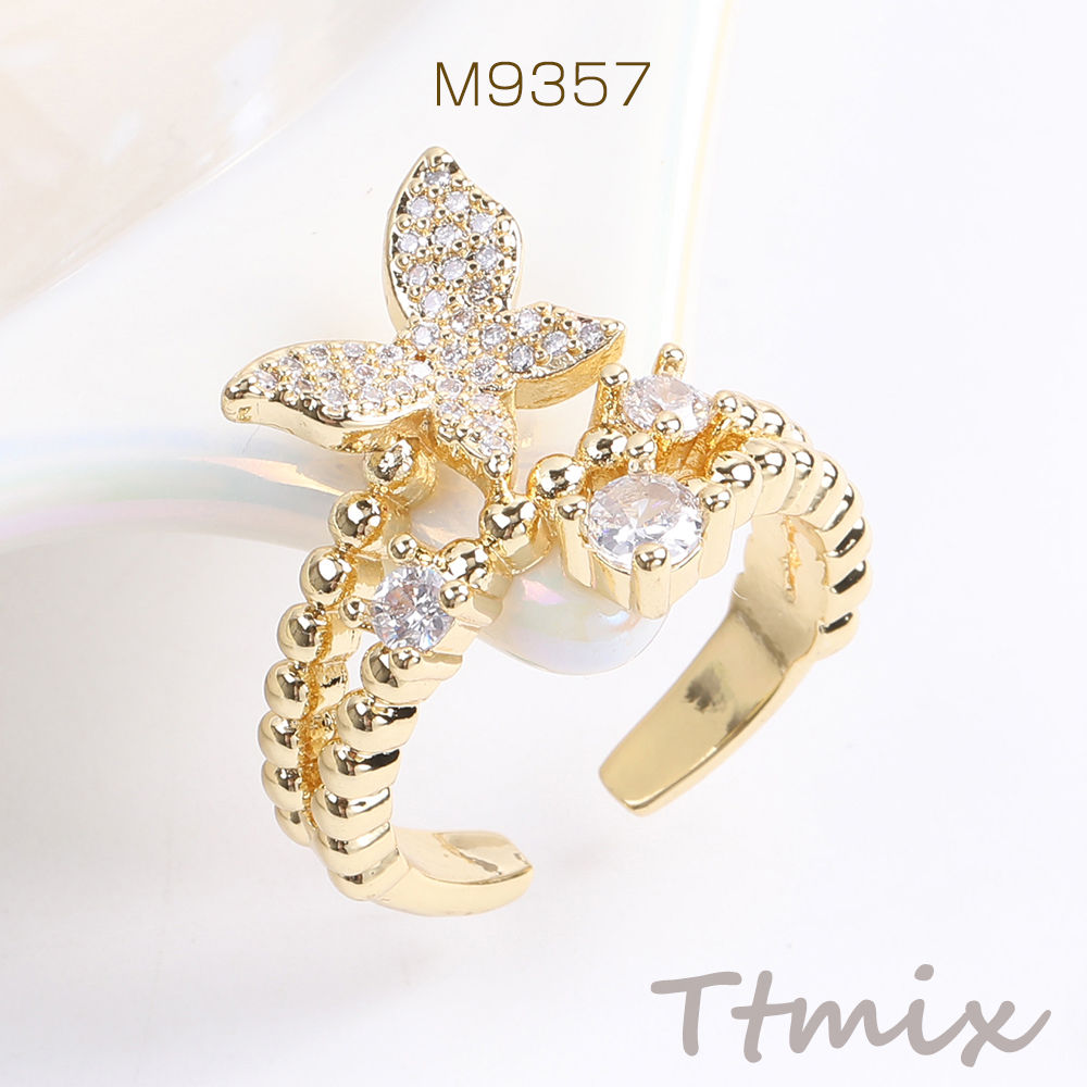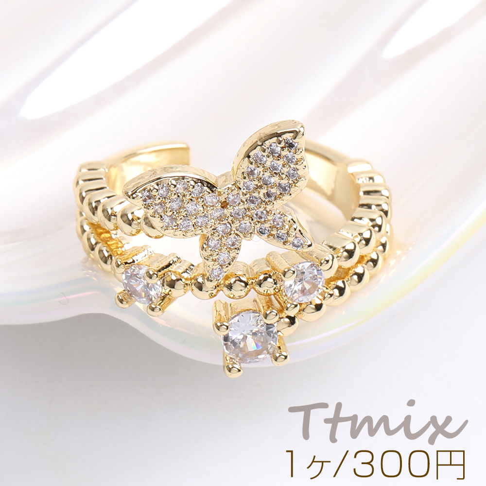 高品質デザインリング 指輪 ジルコニアリング 幅約17mm ゴールド(1ヶ)
