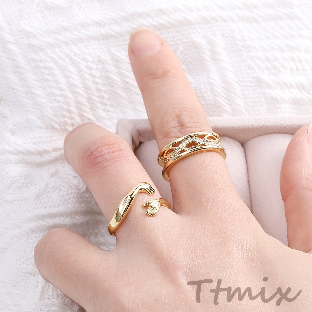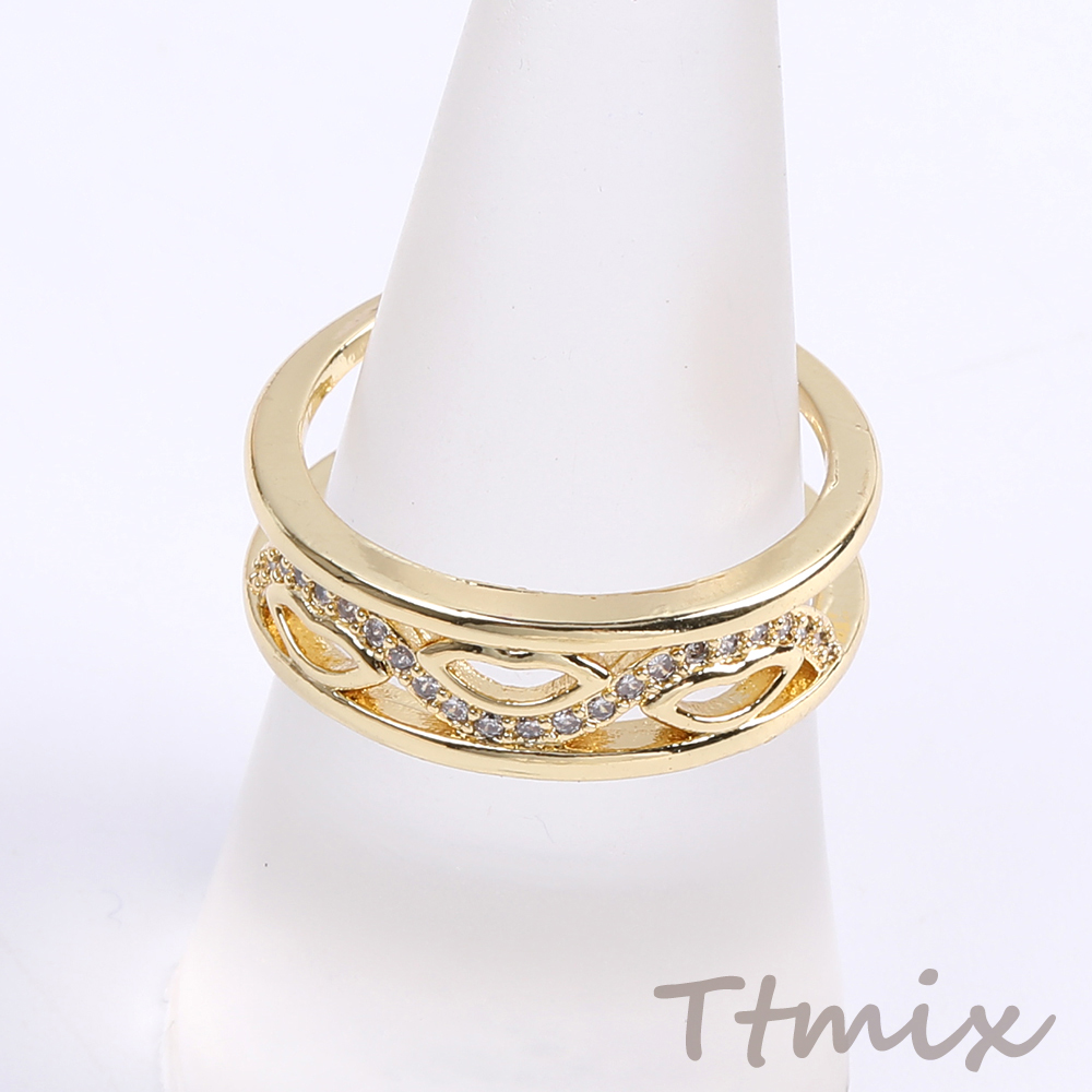 高品質デザインリング 指輪 ジルコニアリング 幅約6mm ゴールド(1ヶ)