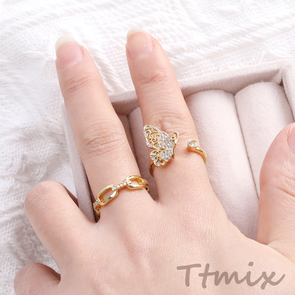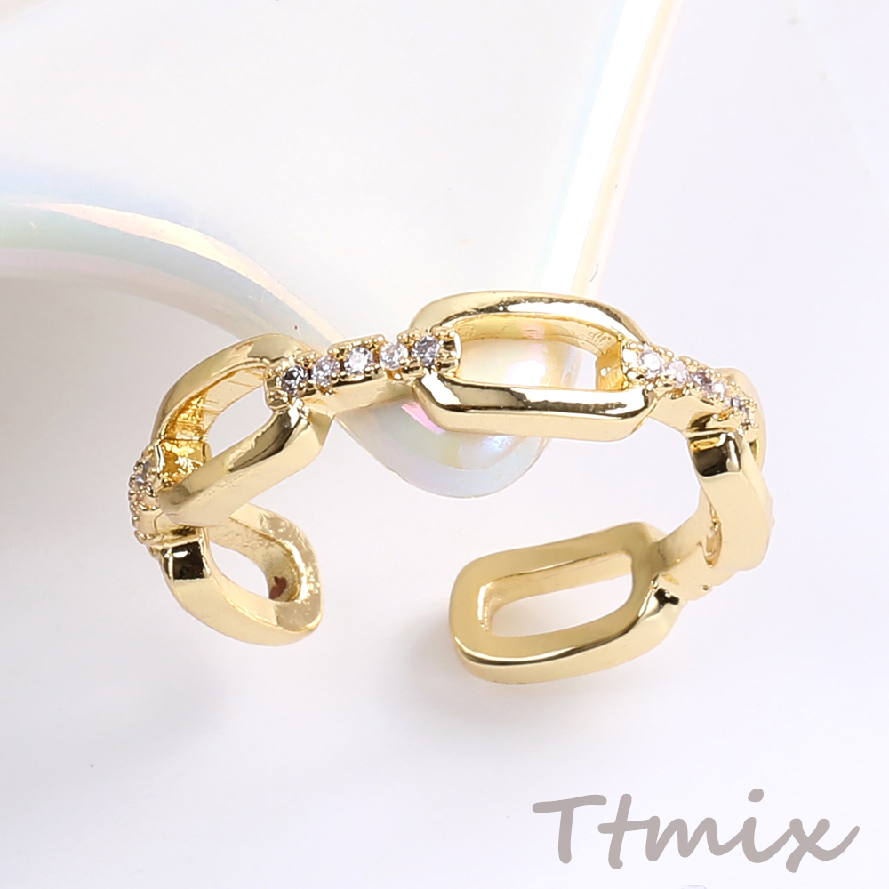 高品質デザインリング 指輪 ジルコニアリング 幅約5mm ゴールド(1ヶ)