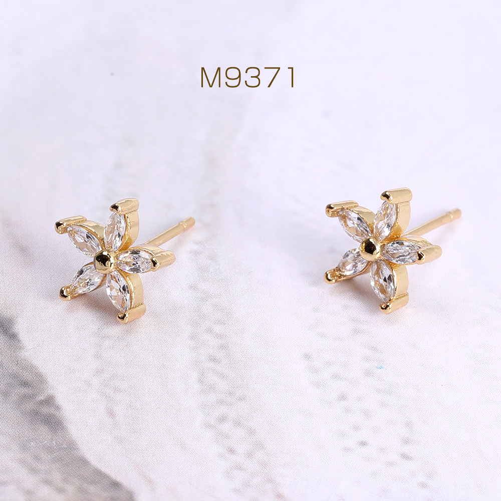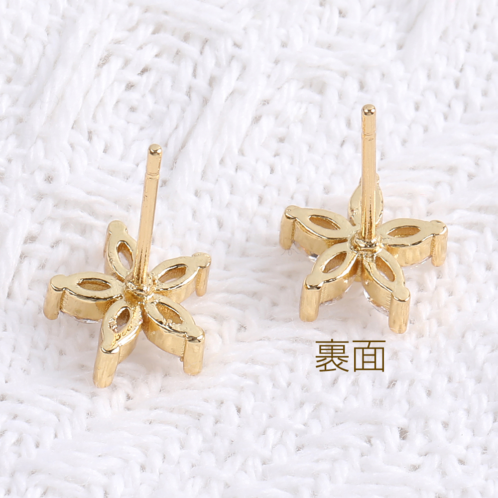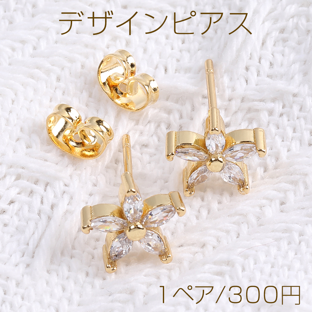 高品質デザインピアス ジルコニアピアス フラワー 五弁花 10mm ゴールド(1ペア)