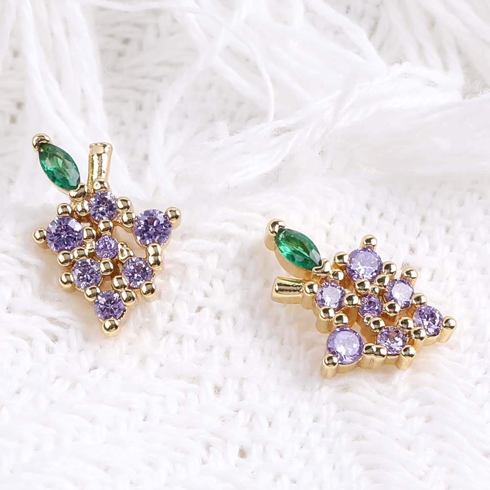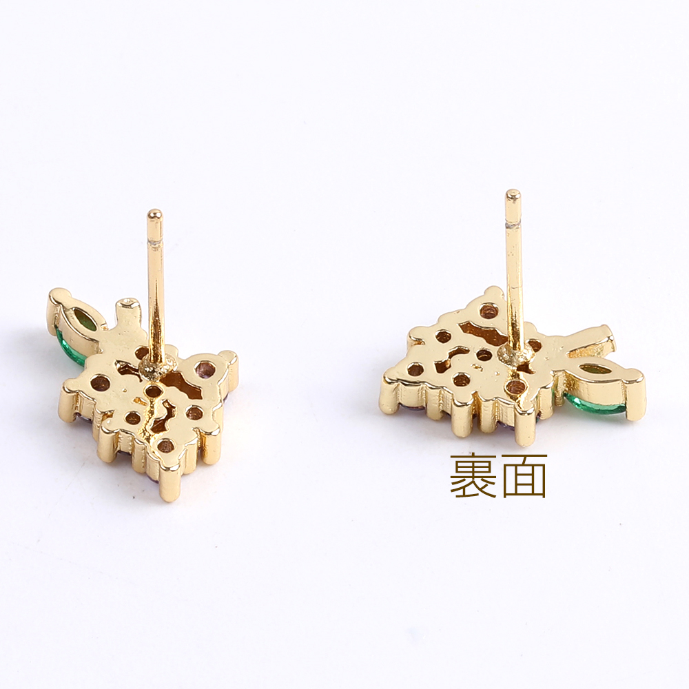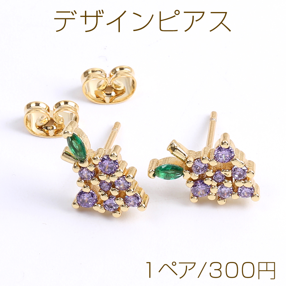 高品質デザインピアス ジルコニアピアス グレープ 12×10mm ゴールド(1ペア)