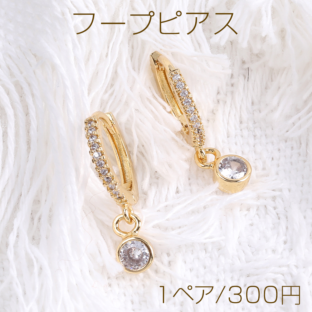 高品質フープピアス ジルコニアフープピアス ラウンド 14×22mm ゴールド(1ペア)