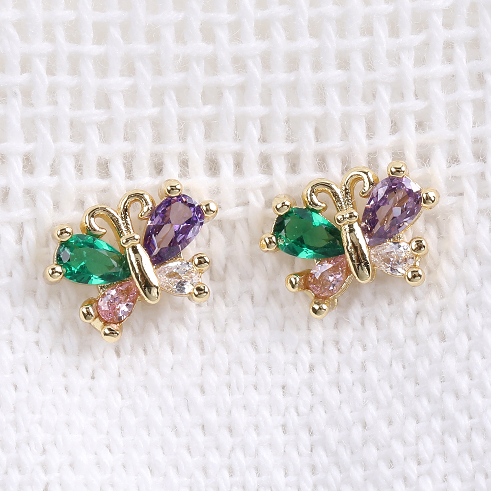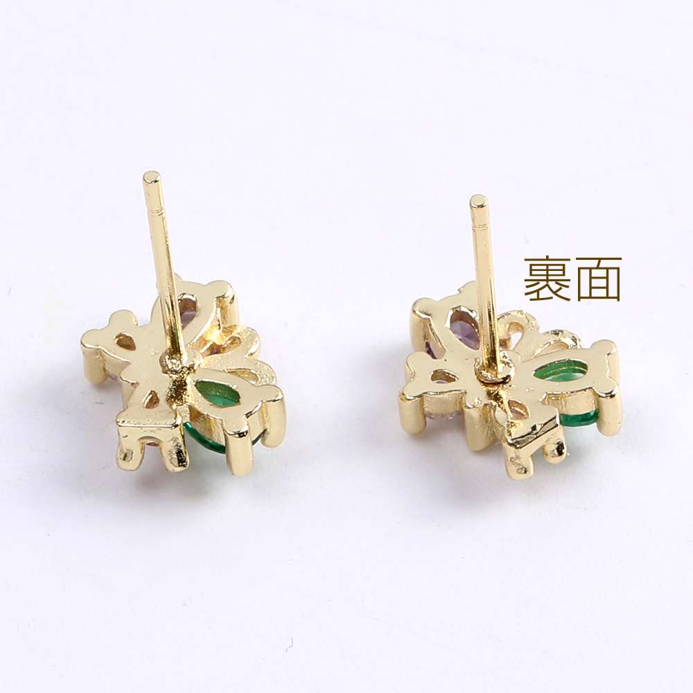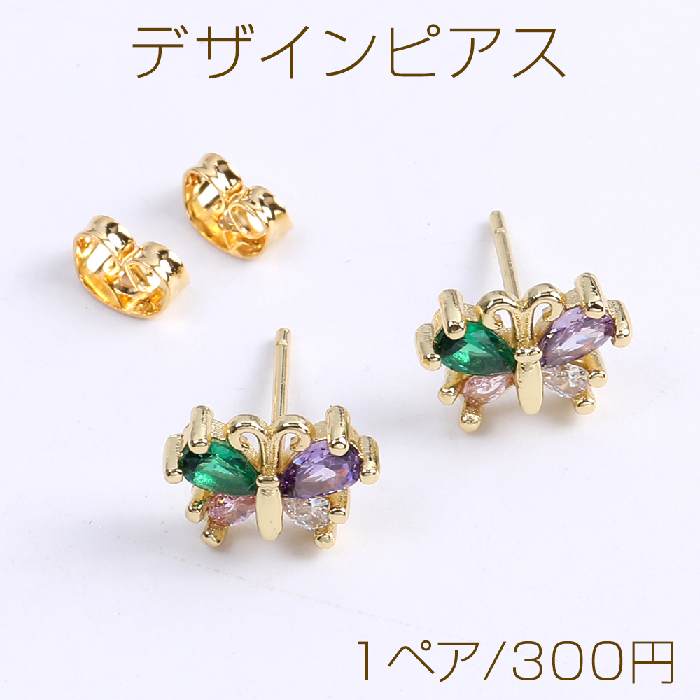 高品質デザインピアス ジルコニアピアス 蝶 8×12mm ゴールド(1ペア)