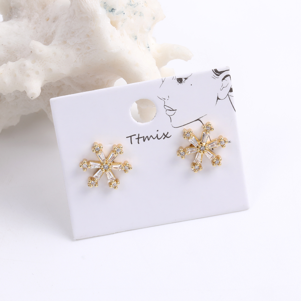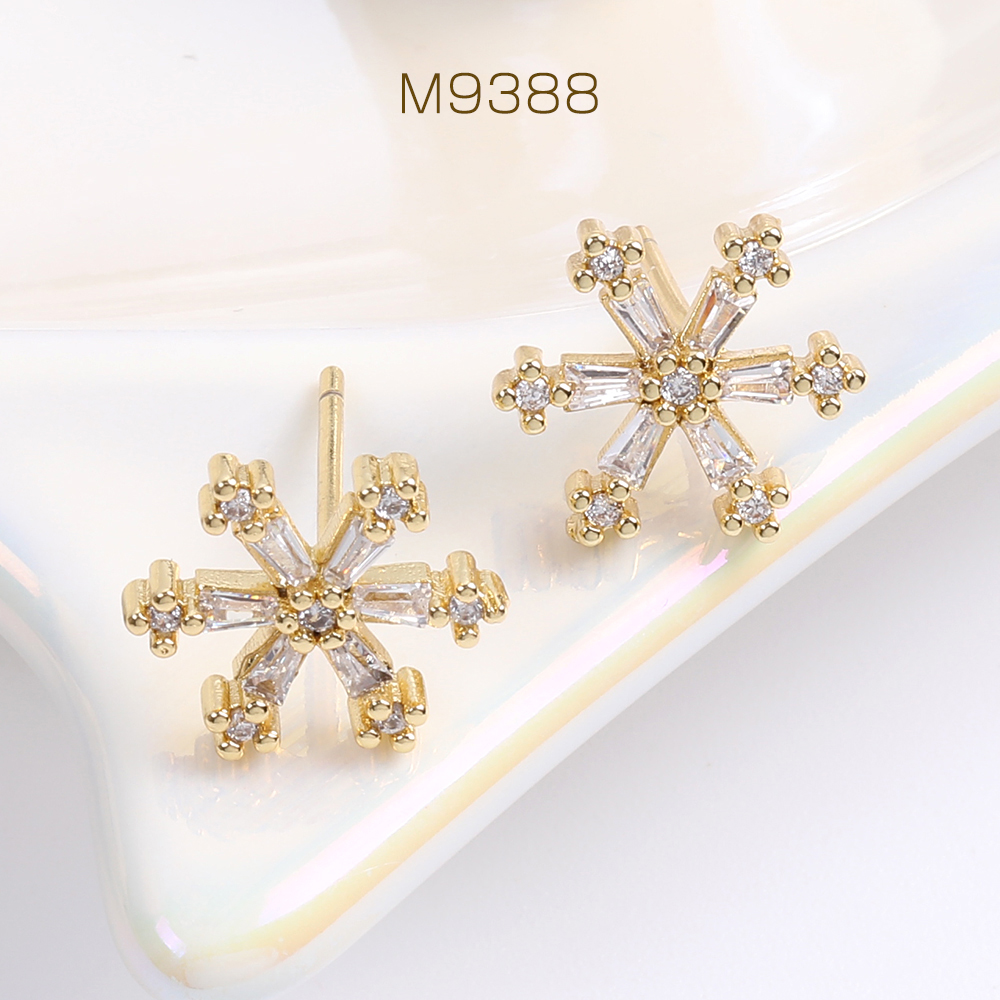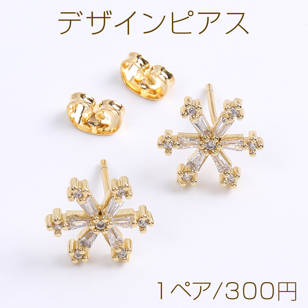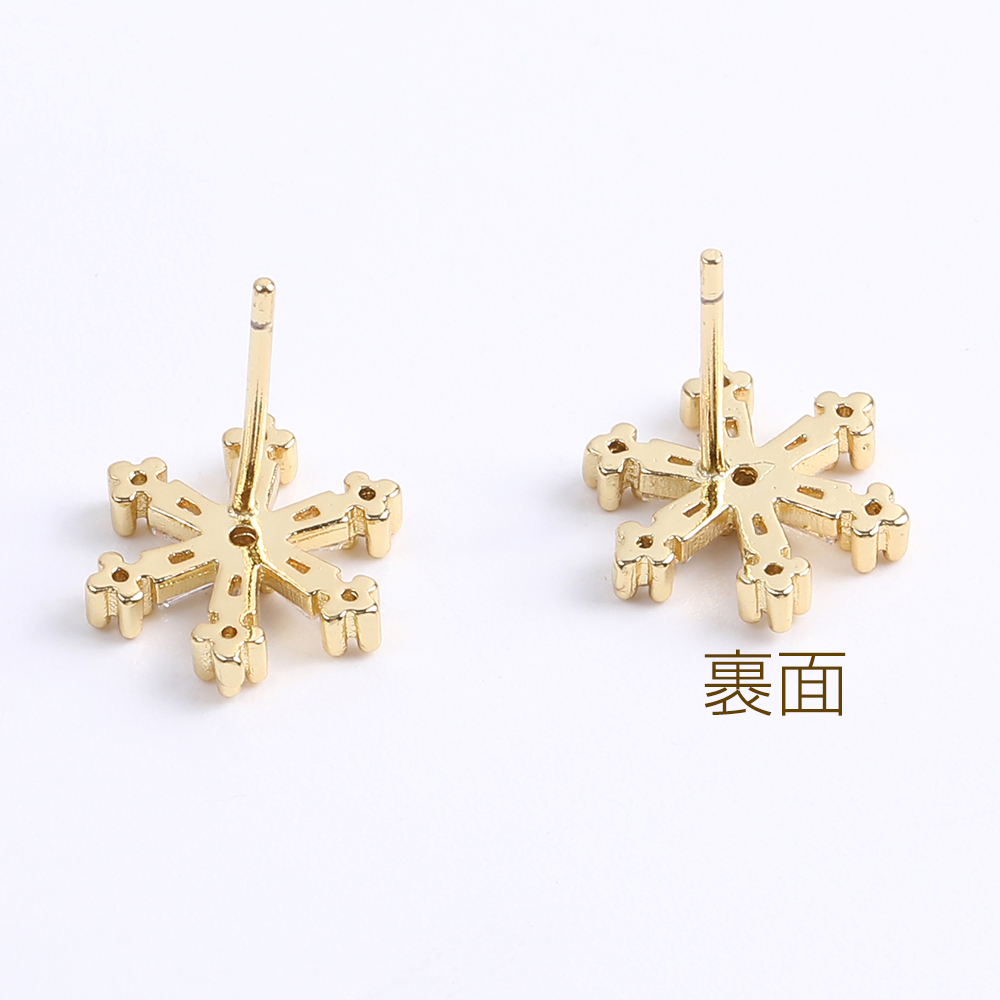 高品質デザインピアス ジルコニアピアス 雪の結晶 11mm ゴールド(1ペア)