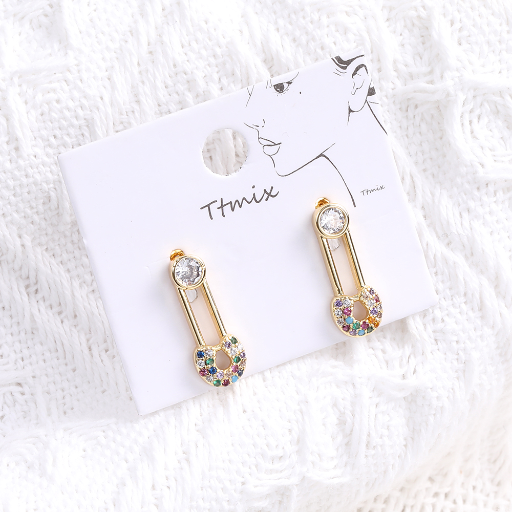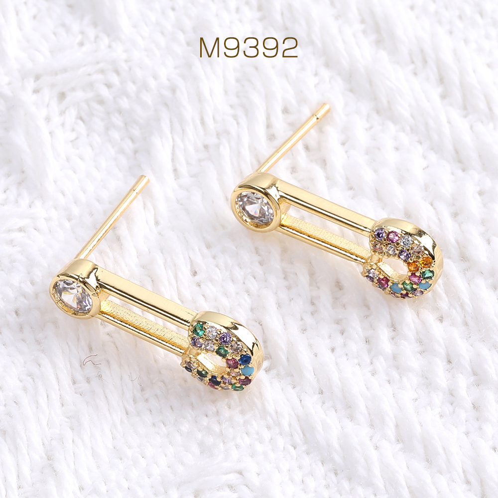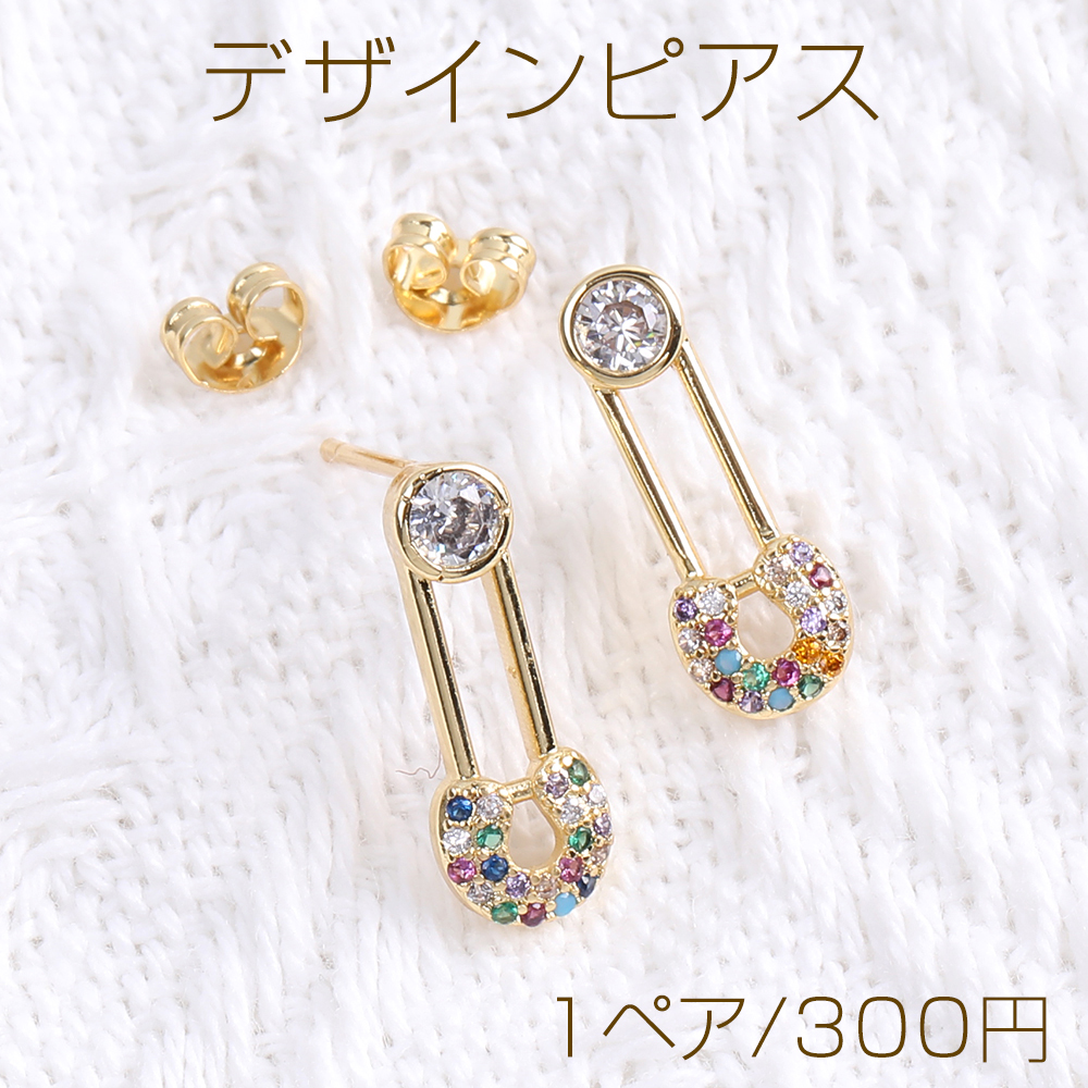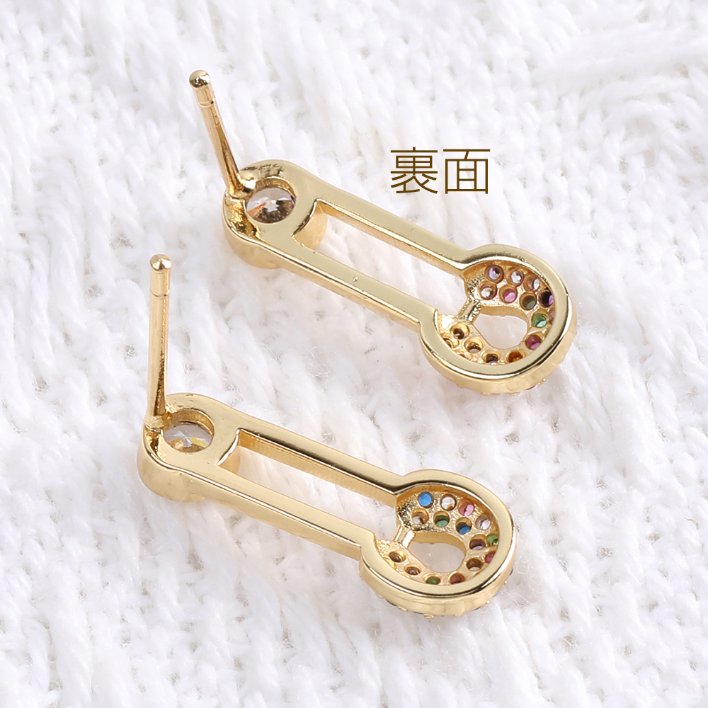 高品質デザインピアス ジルコニアピアス カブトピン 7×18mm ゴールド(1ペア)