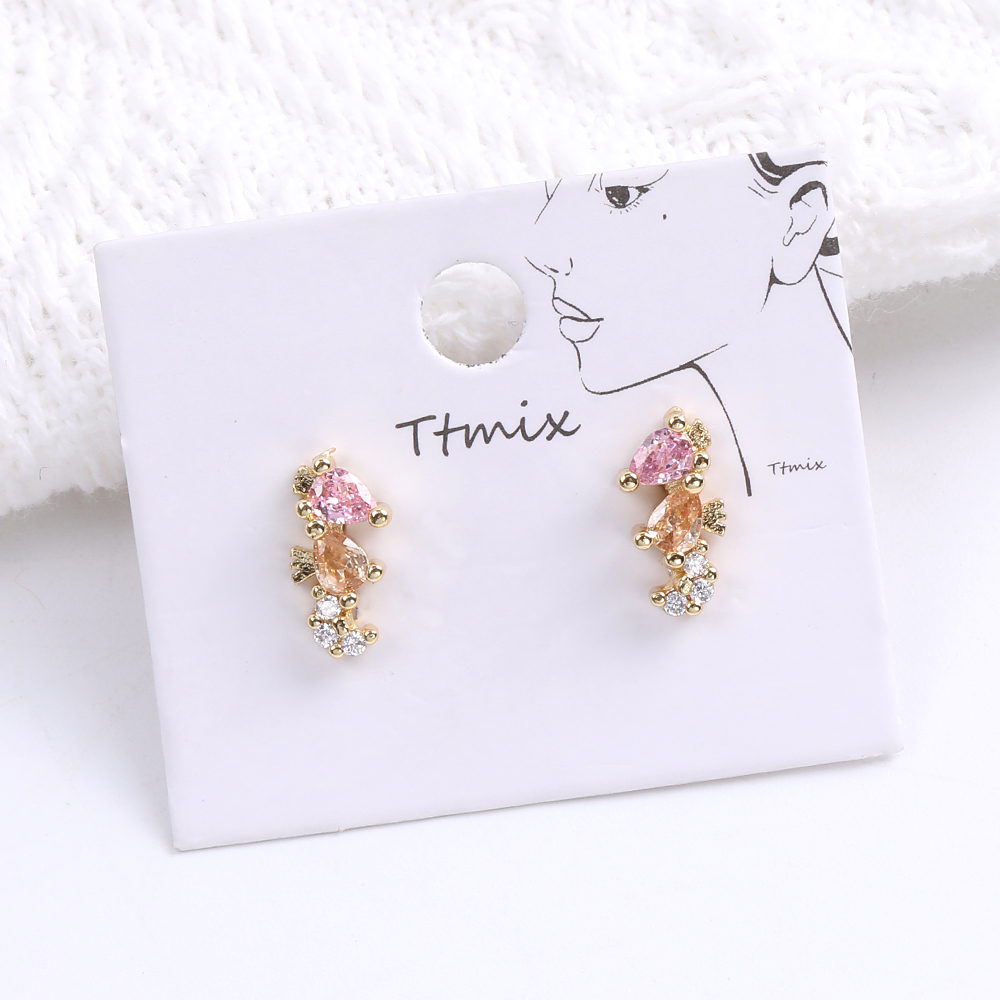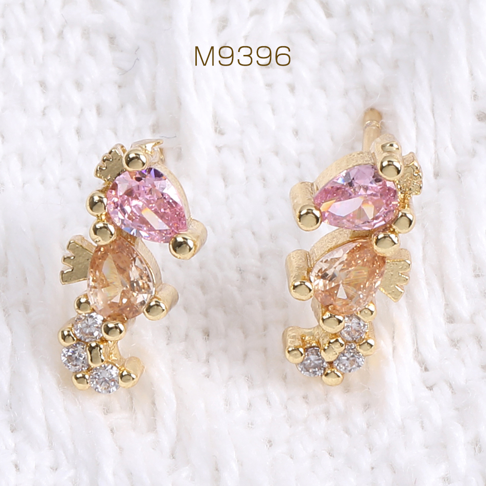 高品質デザインピアス ジルコニアピアス 海馬 6×12mm ゴールド(1ペア)