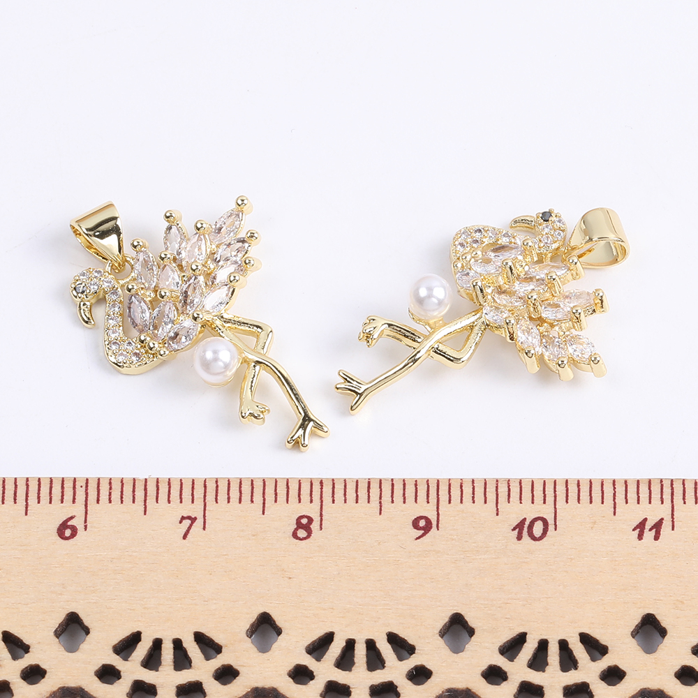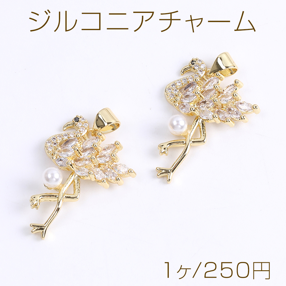 高品質ジルコニアチャーム ダチョウ バチカン付き 18×28mm ゴールド(1ヶ)