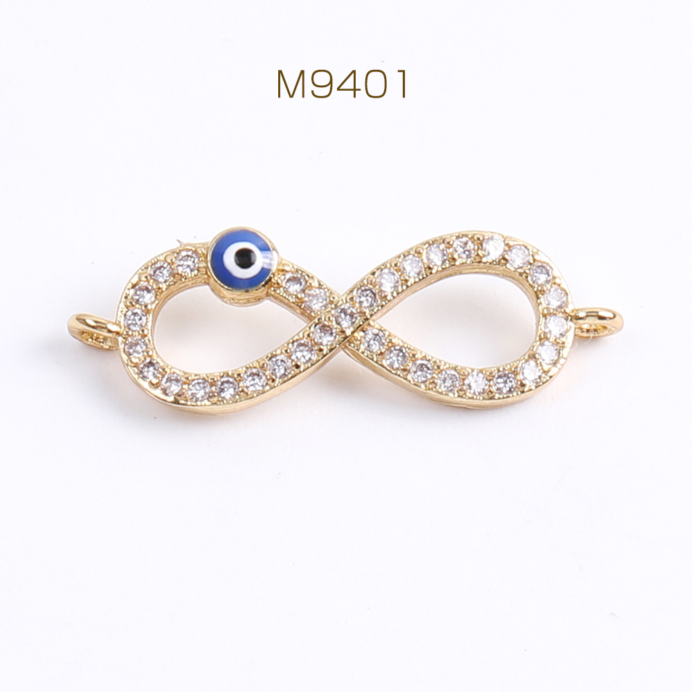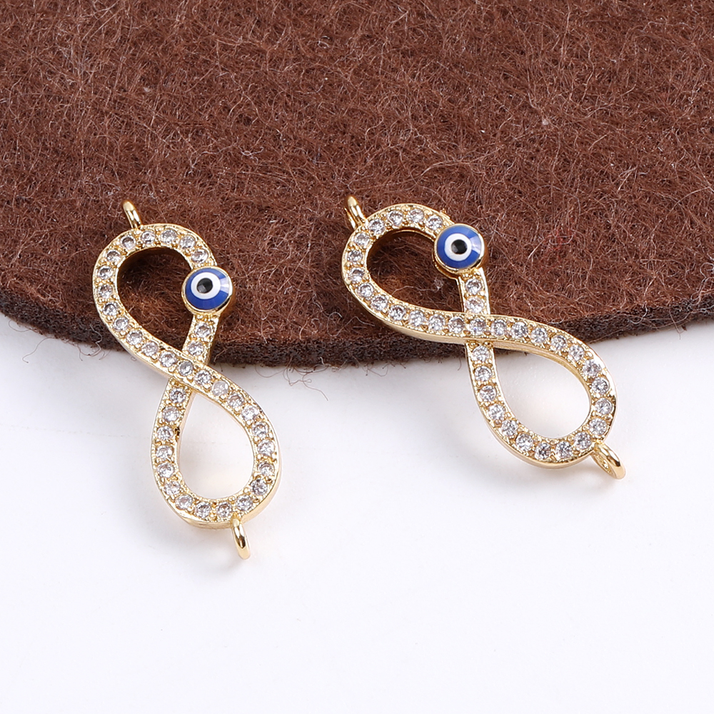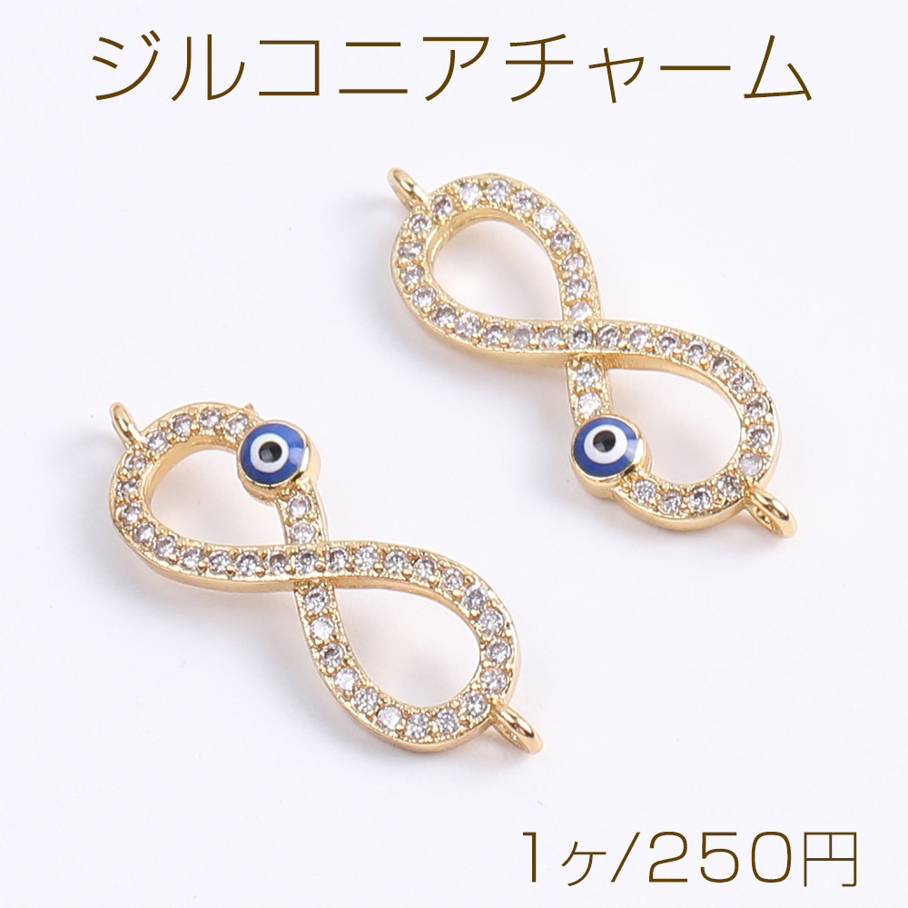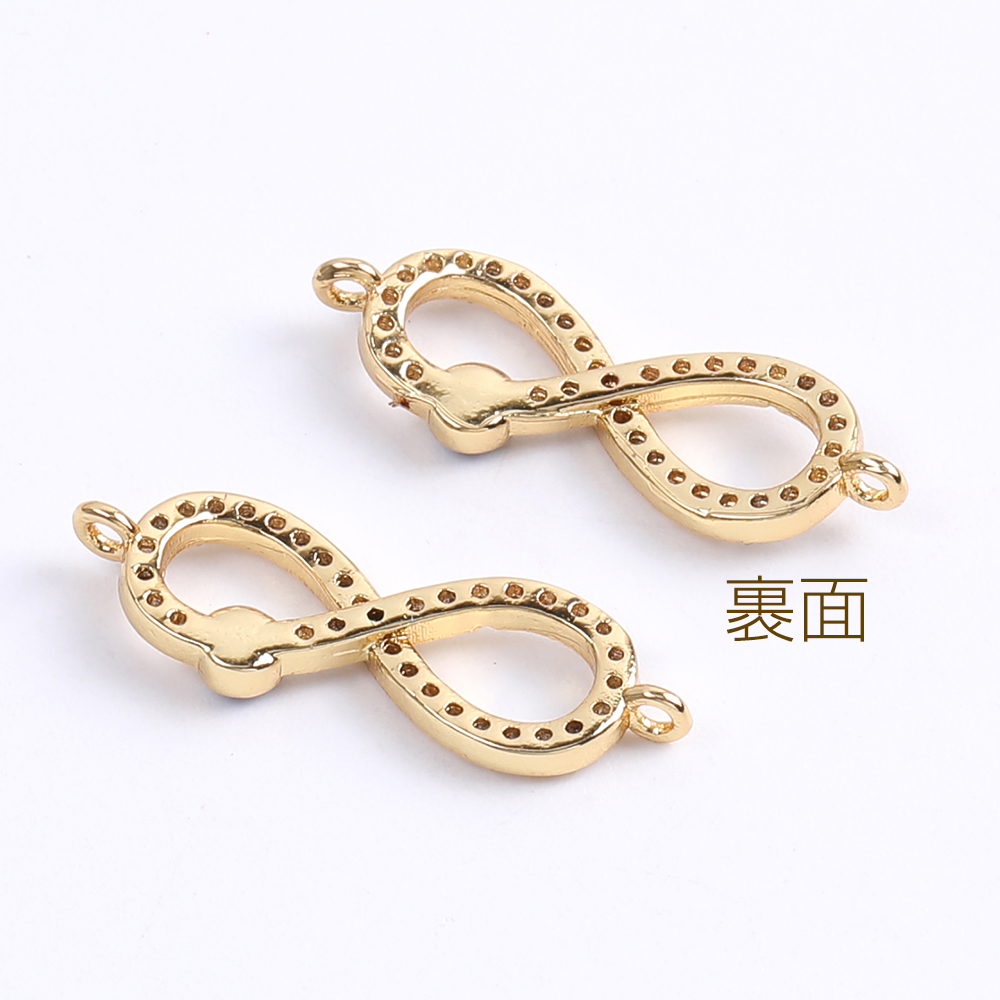 高品質ジルコニアチャーム コネクターチャーム メガネ型 2カン付き 8×24mm ゴールド(1ヶ)