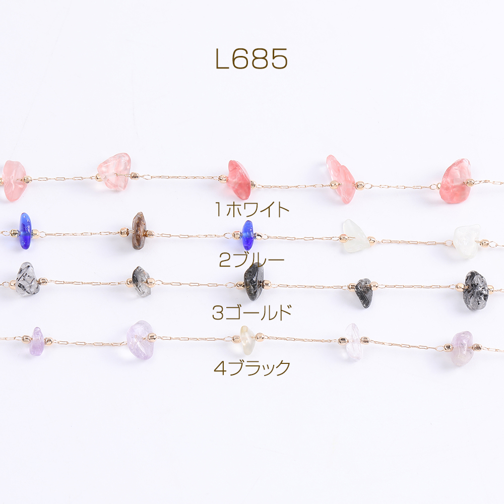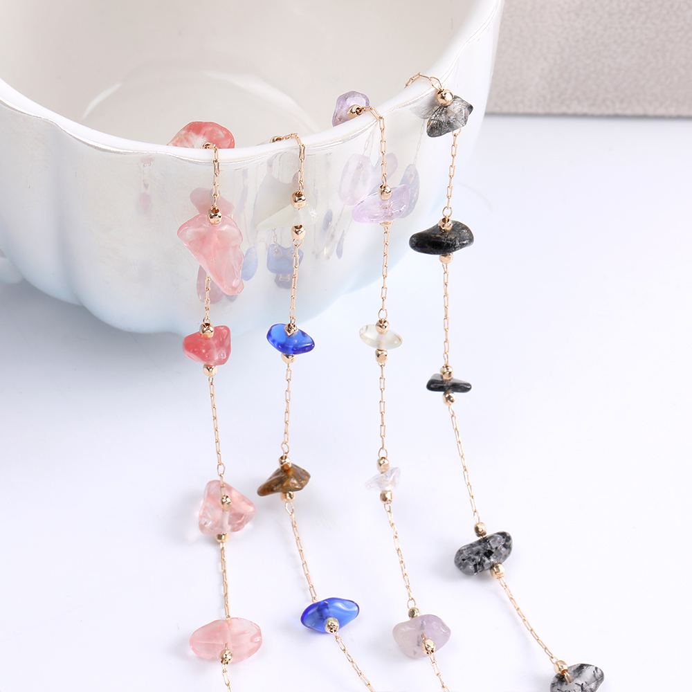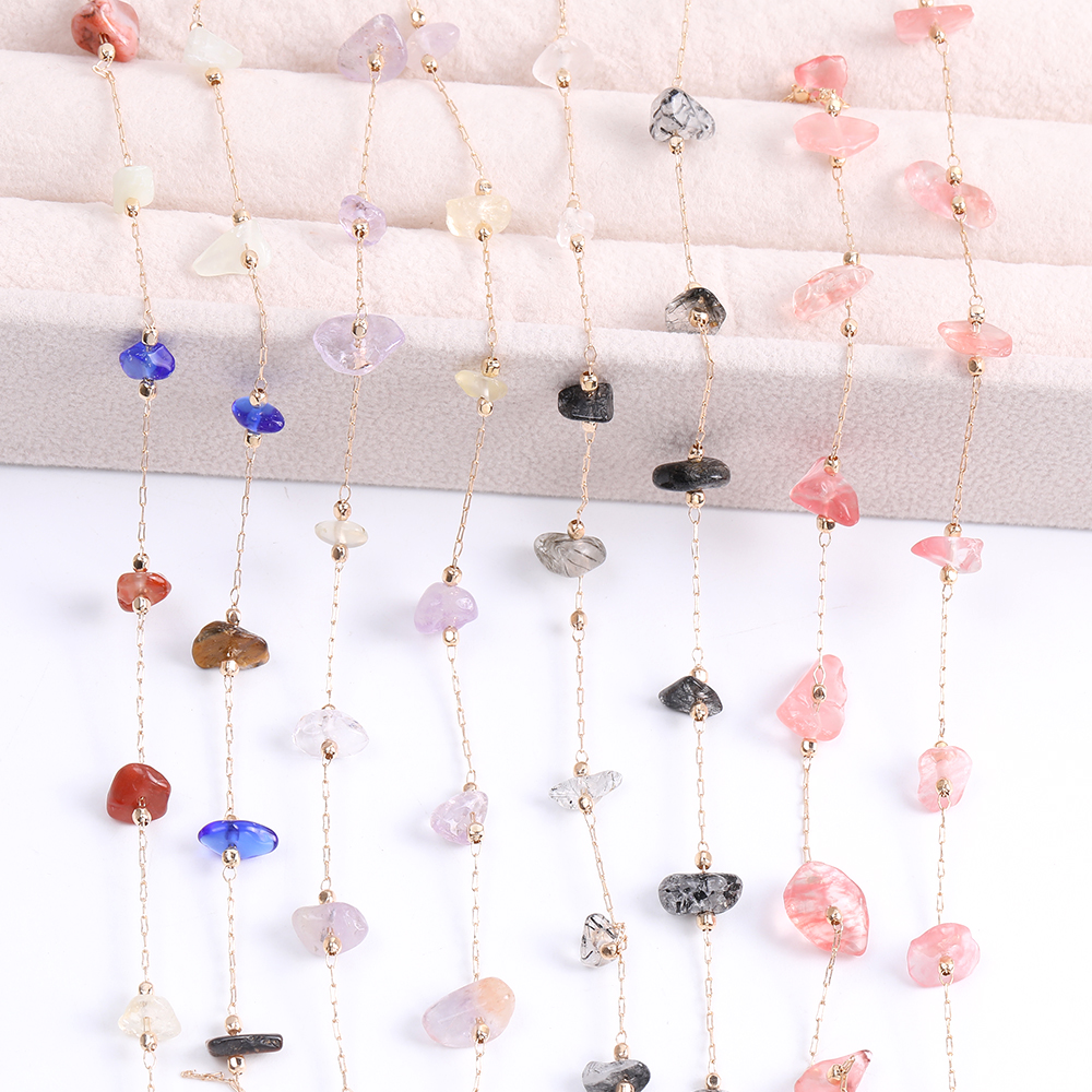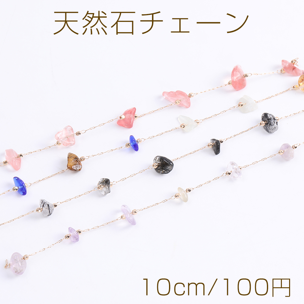 高品質天然石チェーン ハンドメードチェーン さざれ石 16Kゴールドメッキ 色落ちしにくい(10cm)