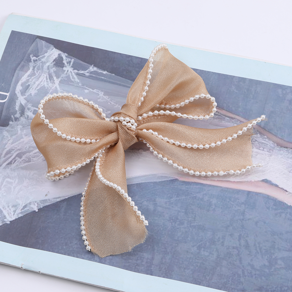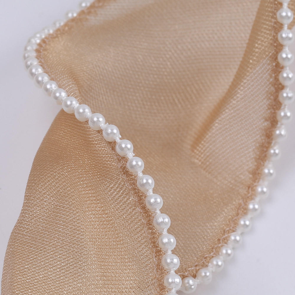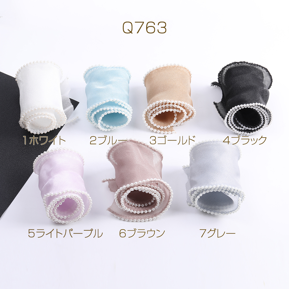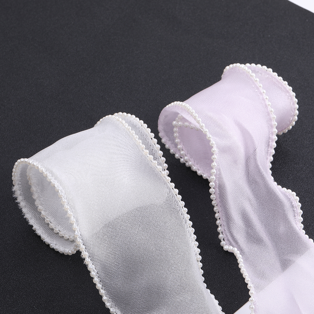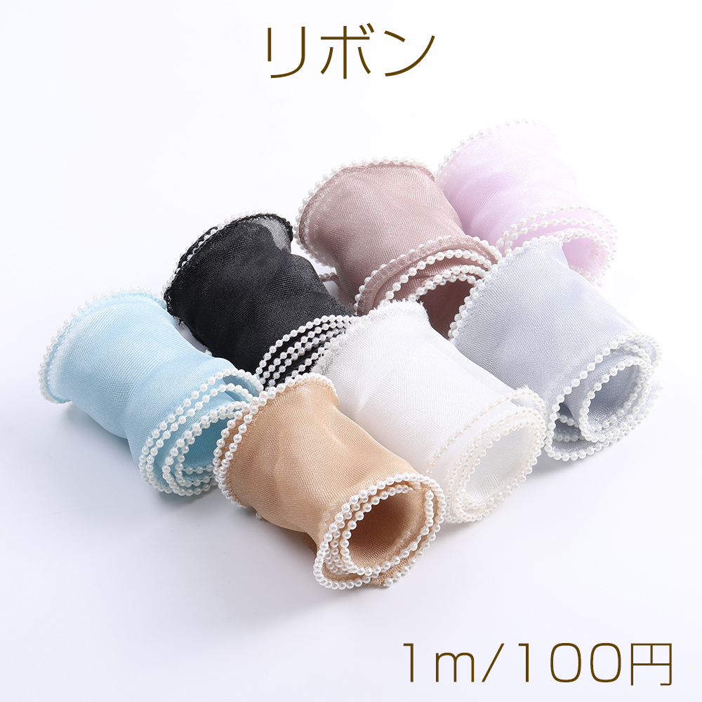 パール付きチュールリボン レースリボン 服飾資材 ラッピングリボン 手作りヘアリボン 幅約6cm(1m)