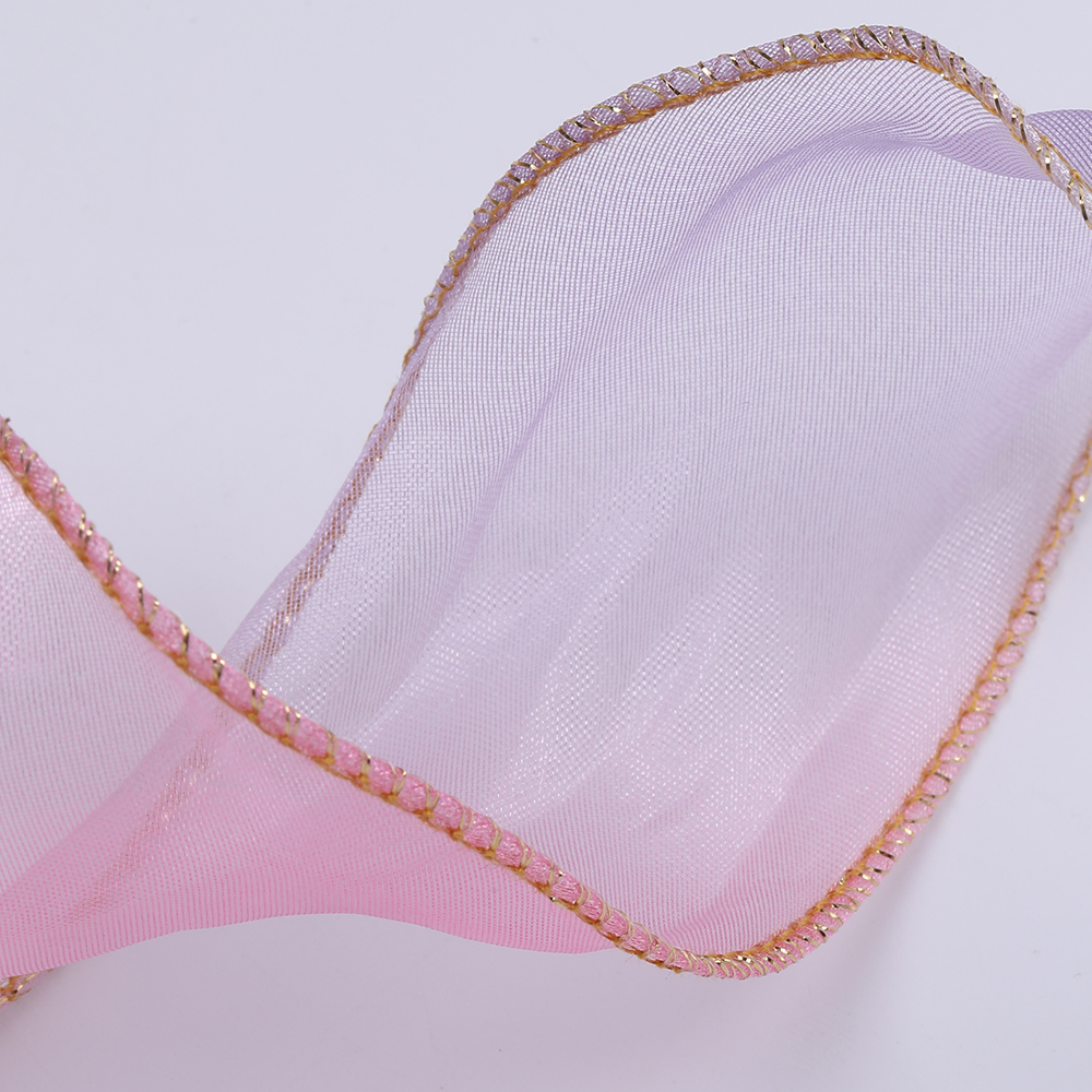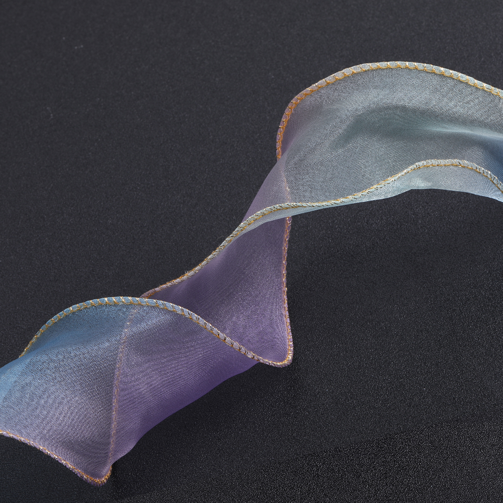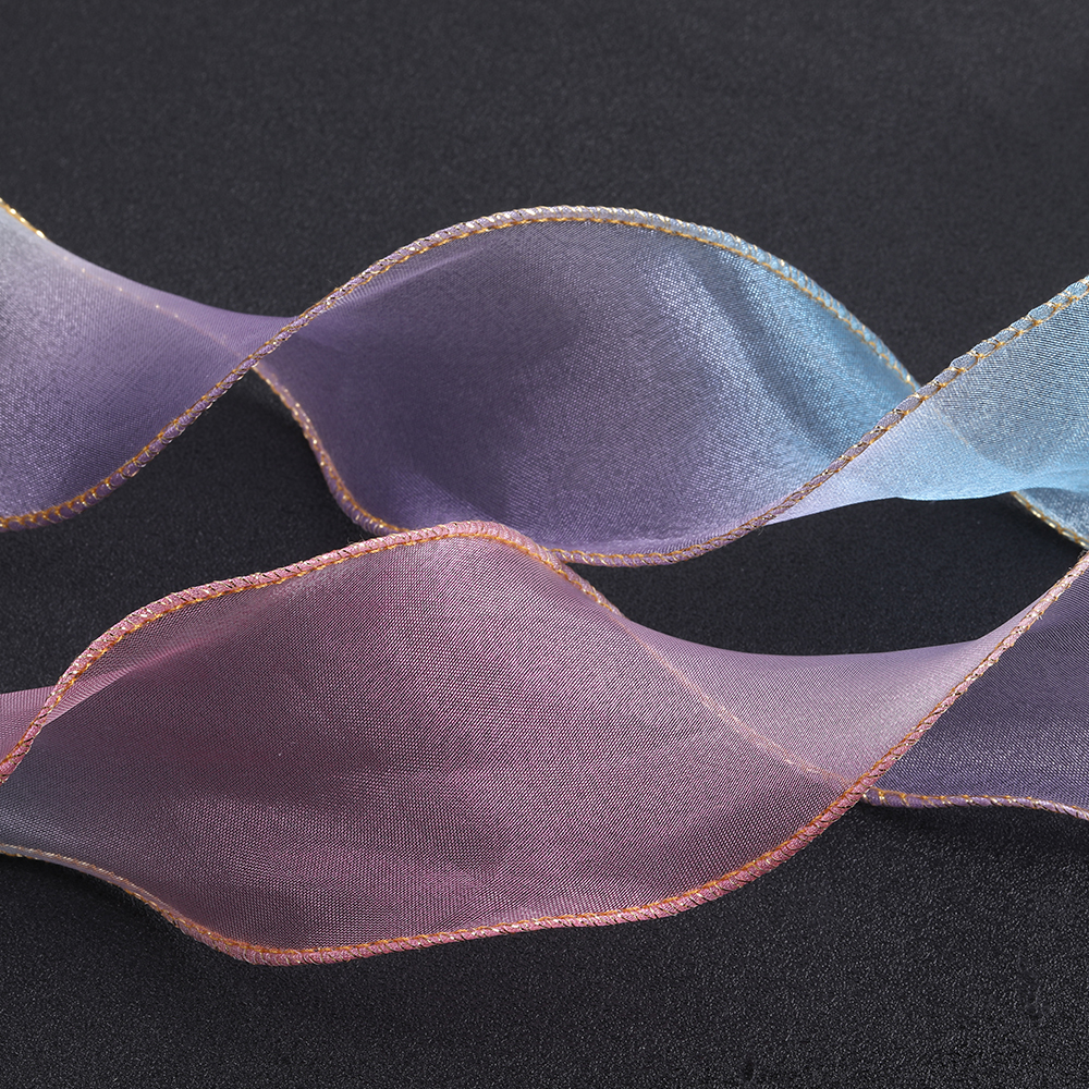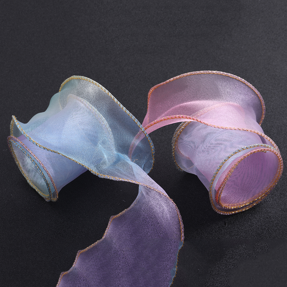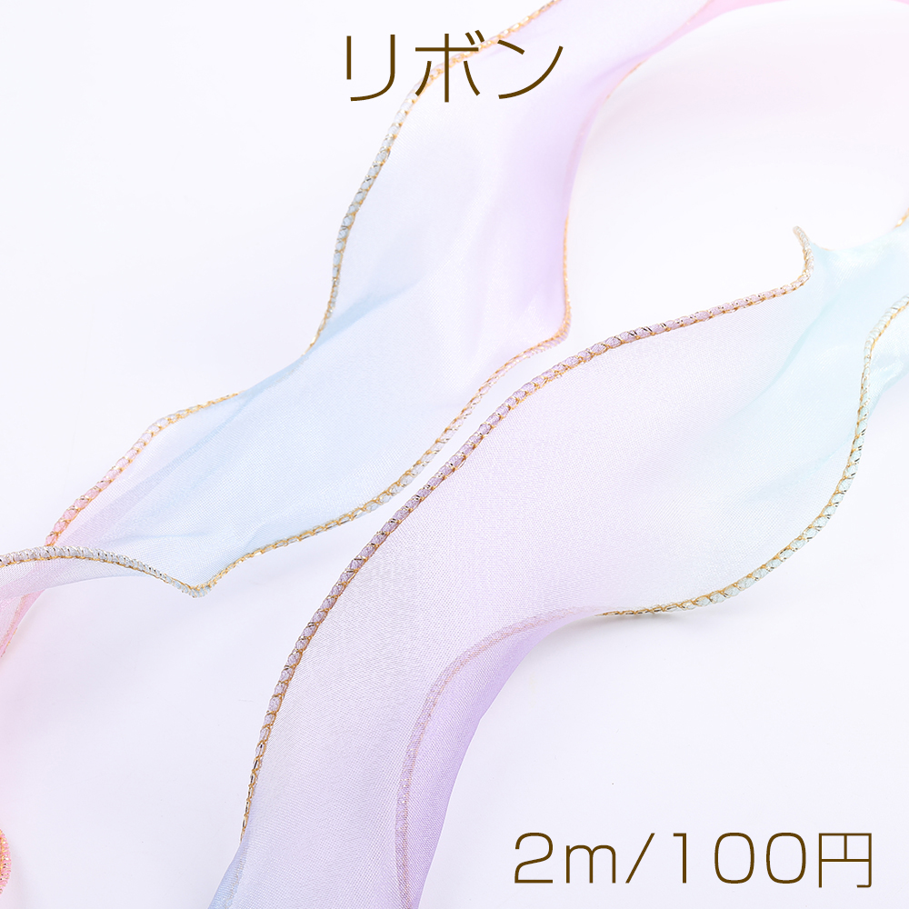 オーガンジーチュールリボン グラデーションカラー レースリボン 服飾資材 ラッピングリボン 手作りヘアリボン 幅約5cm(2m)