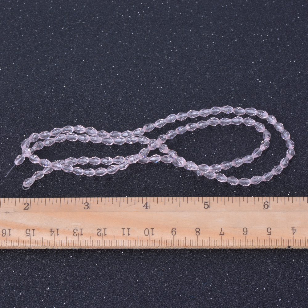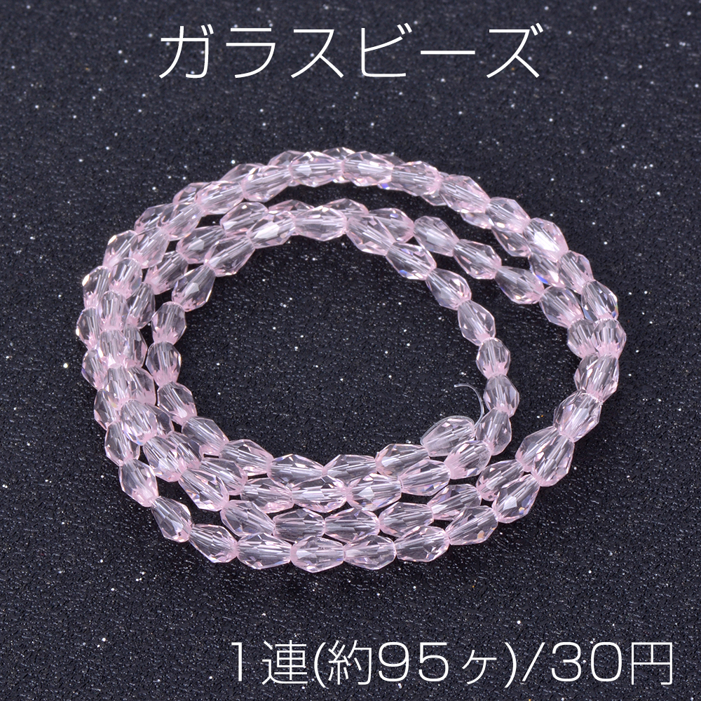 ガラスビーズ しずく型カット 4×5mm クリアピンク 1連(約95ヶ)