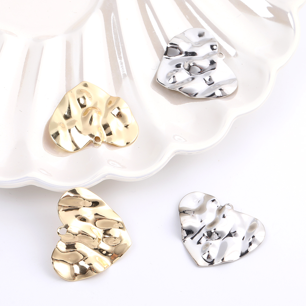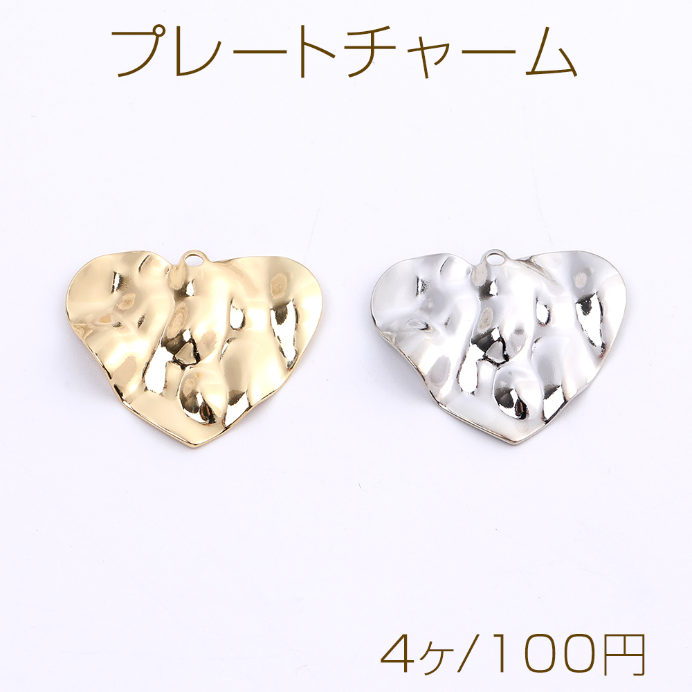 高品質プレートチャーム メタルチャーム メタルプレートチャーム ハート型 カン付き 24×28mm(4ヶ)