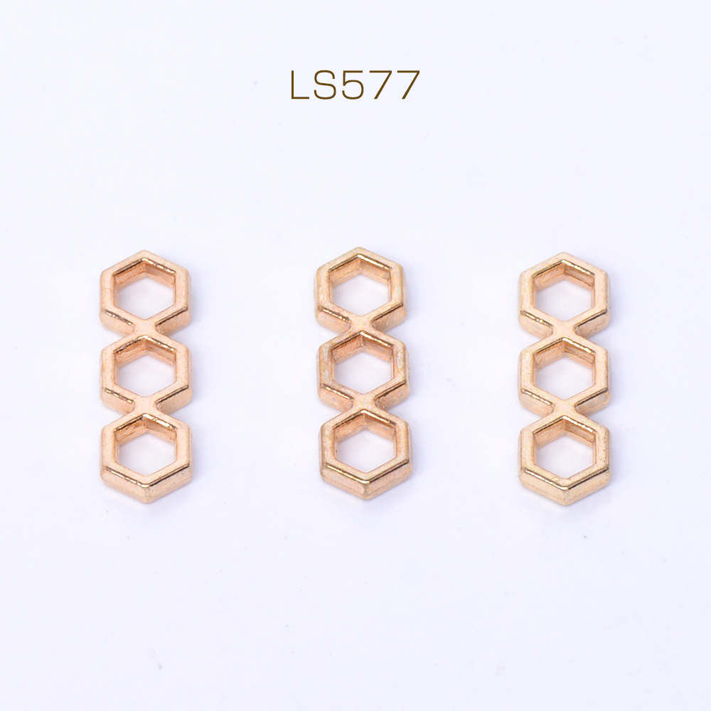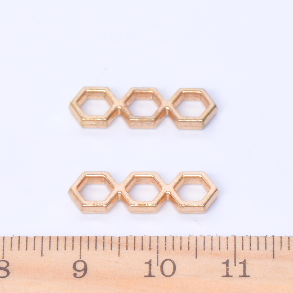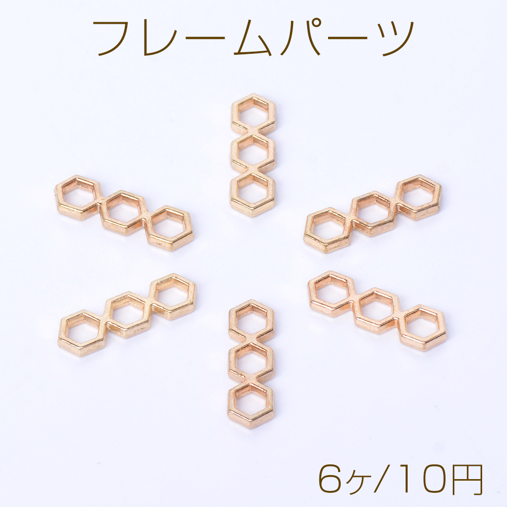 フレームパーツ 3連六角形 6×20mm ゴールド(6ヶ)