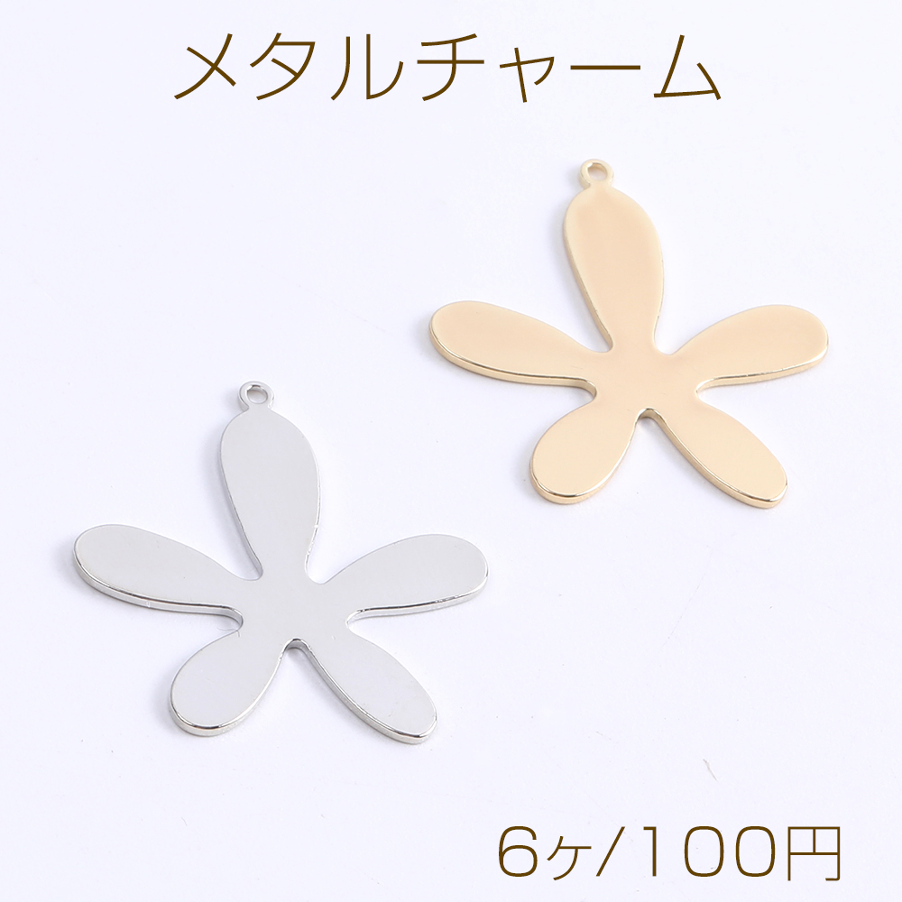 高品質メタルチャーム フラワー 五弁花 カン付き 25×26mm(6ヶ)