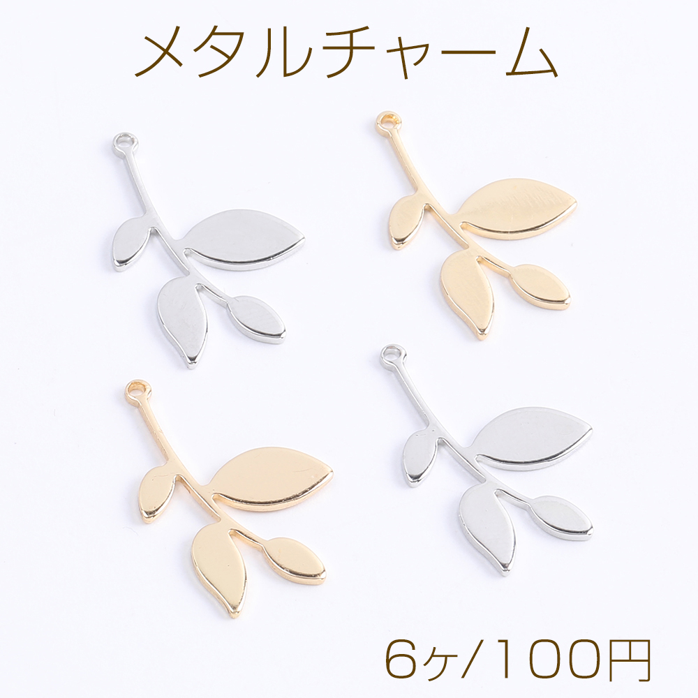 高品質メタルチャーム リーフの枝 カン付き 15×24mm(6ヶ)