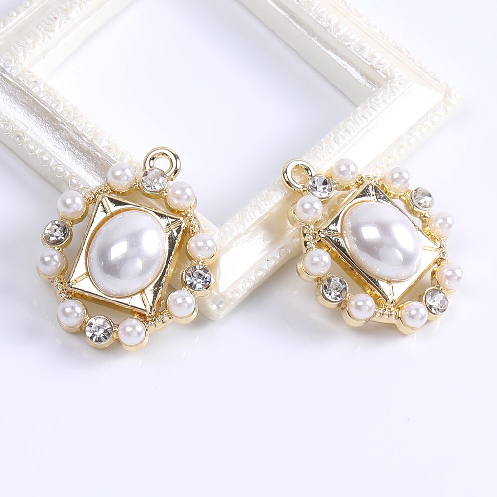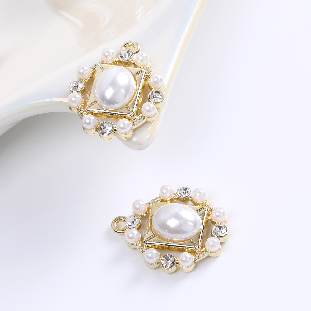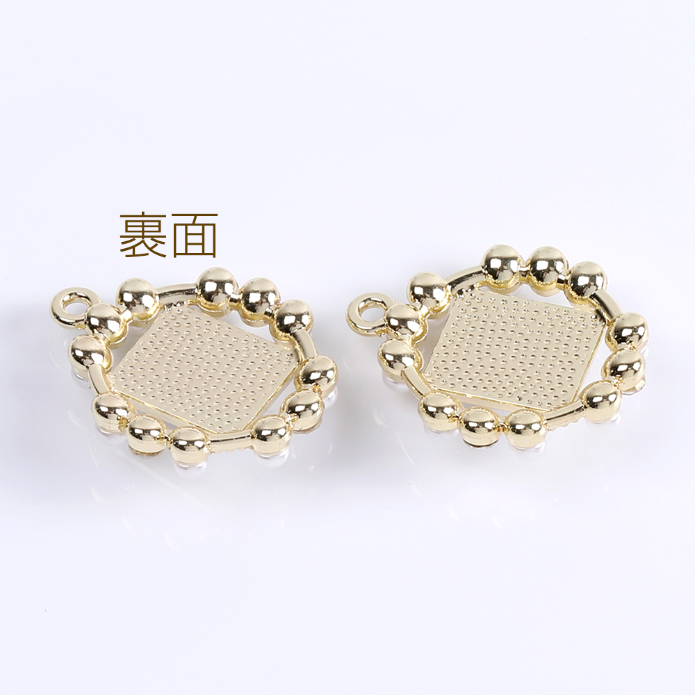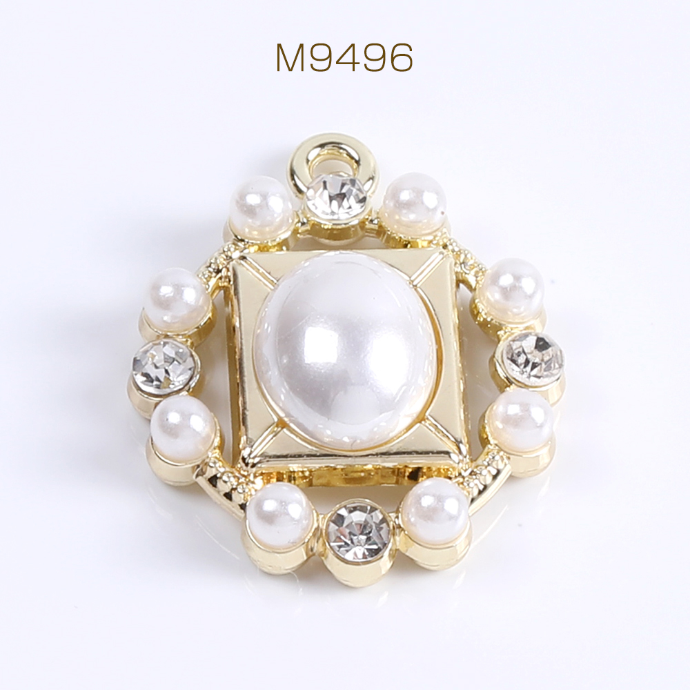 メタルチャーム パール&ラインストーン付き 19×24mm ゴールド(2ヶ)