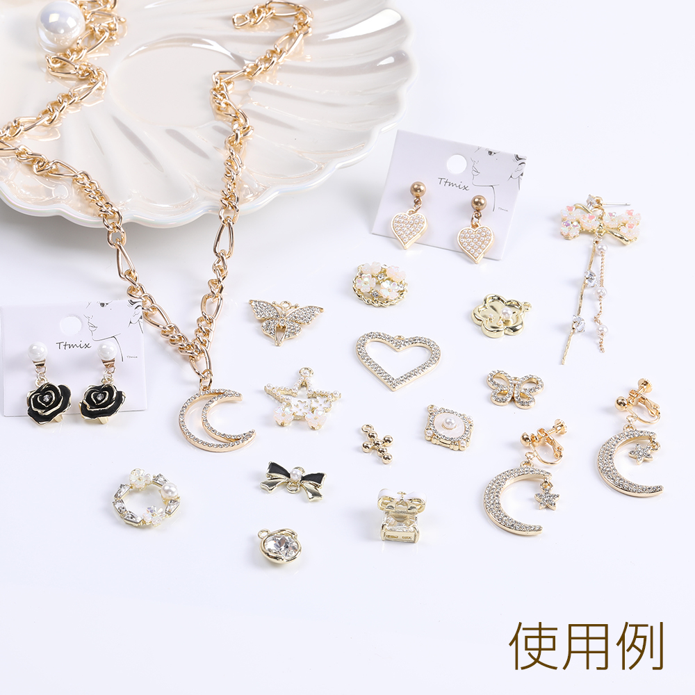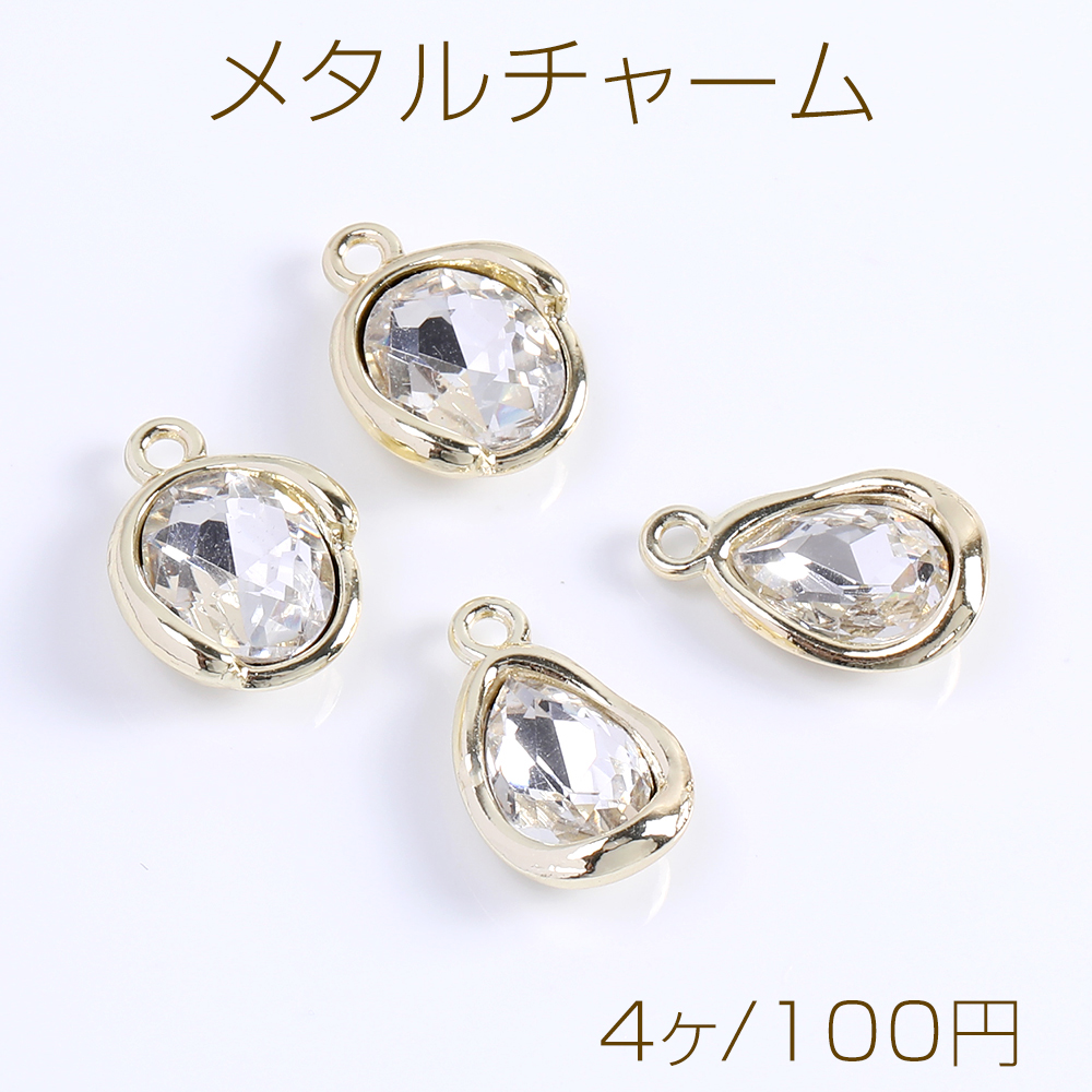 メタルチャーム ラインストーン付き ゴールド(4ヶ)
