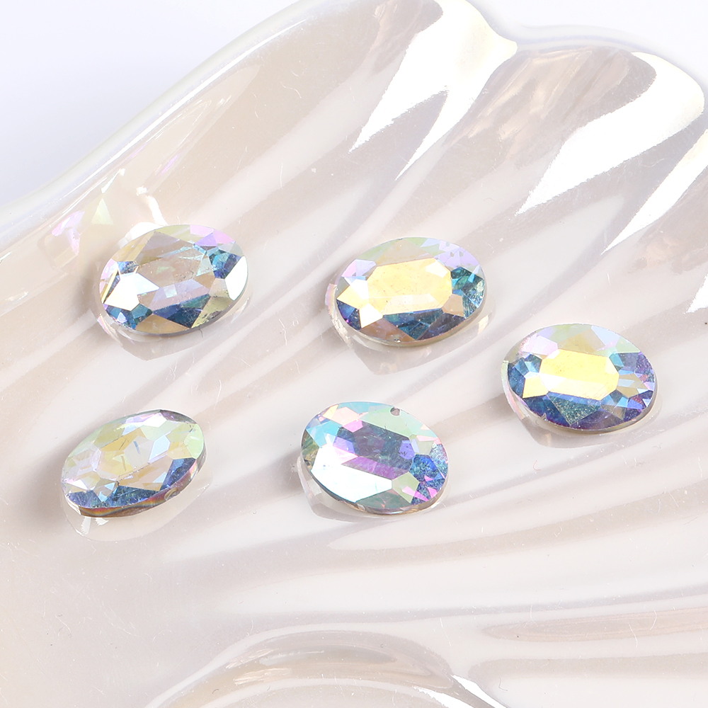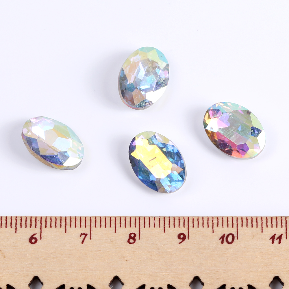 ガラスラインストーン Vカット オーバル 11×14mm ABカラー(4ヶ)