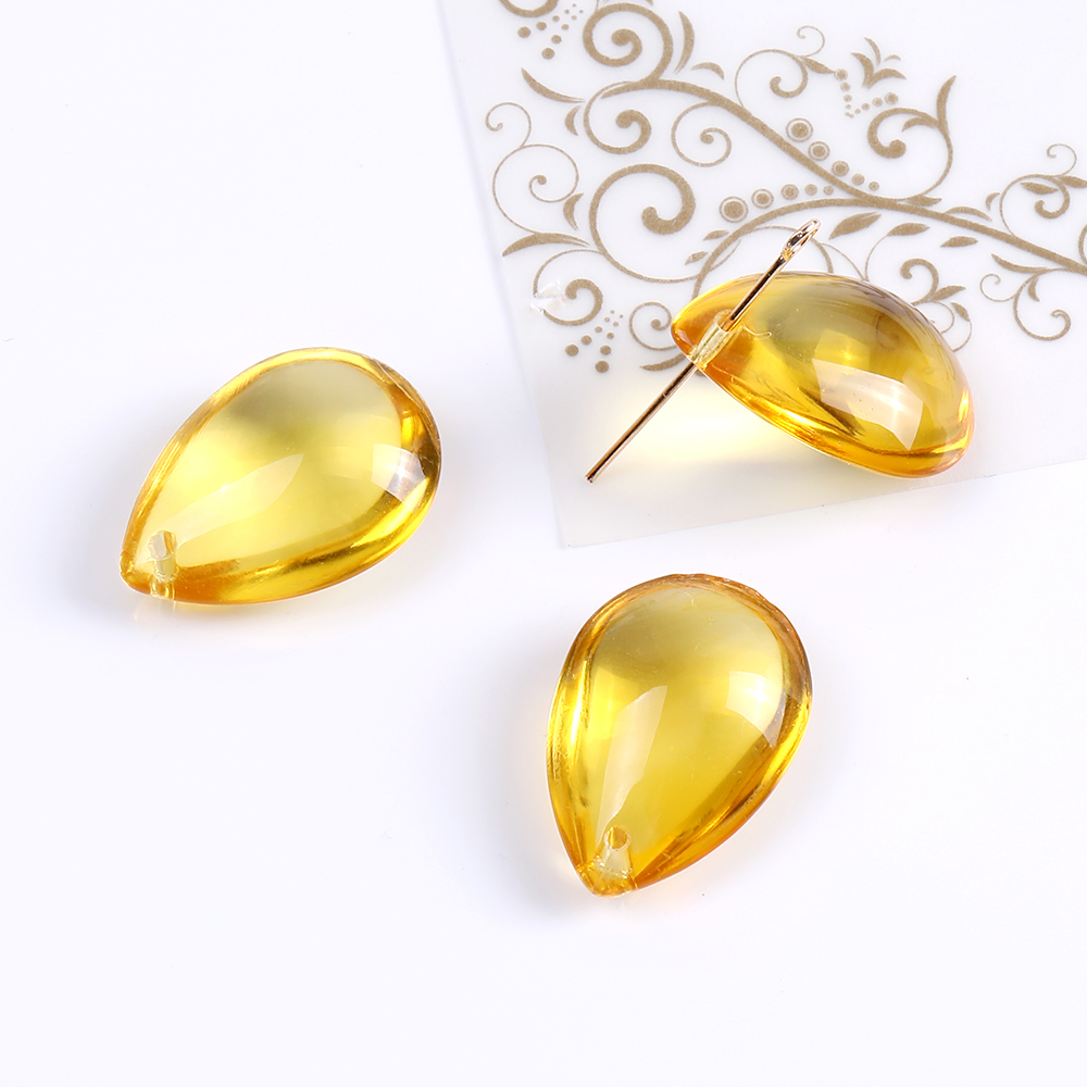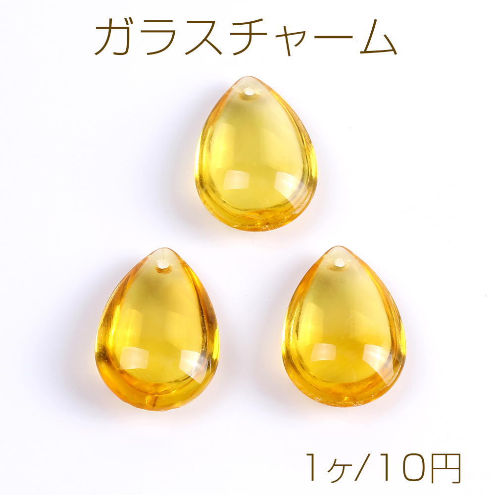 ガラスチャーム しずく型 1穴 17×24mm クリアイエロー(1ヶ)