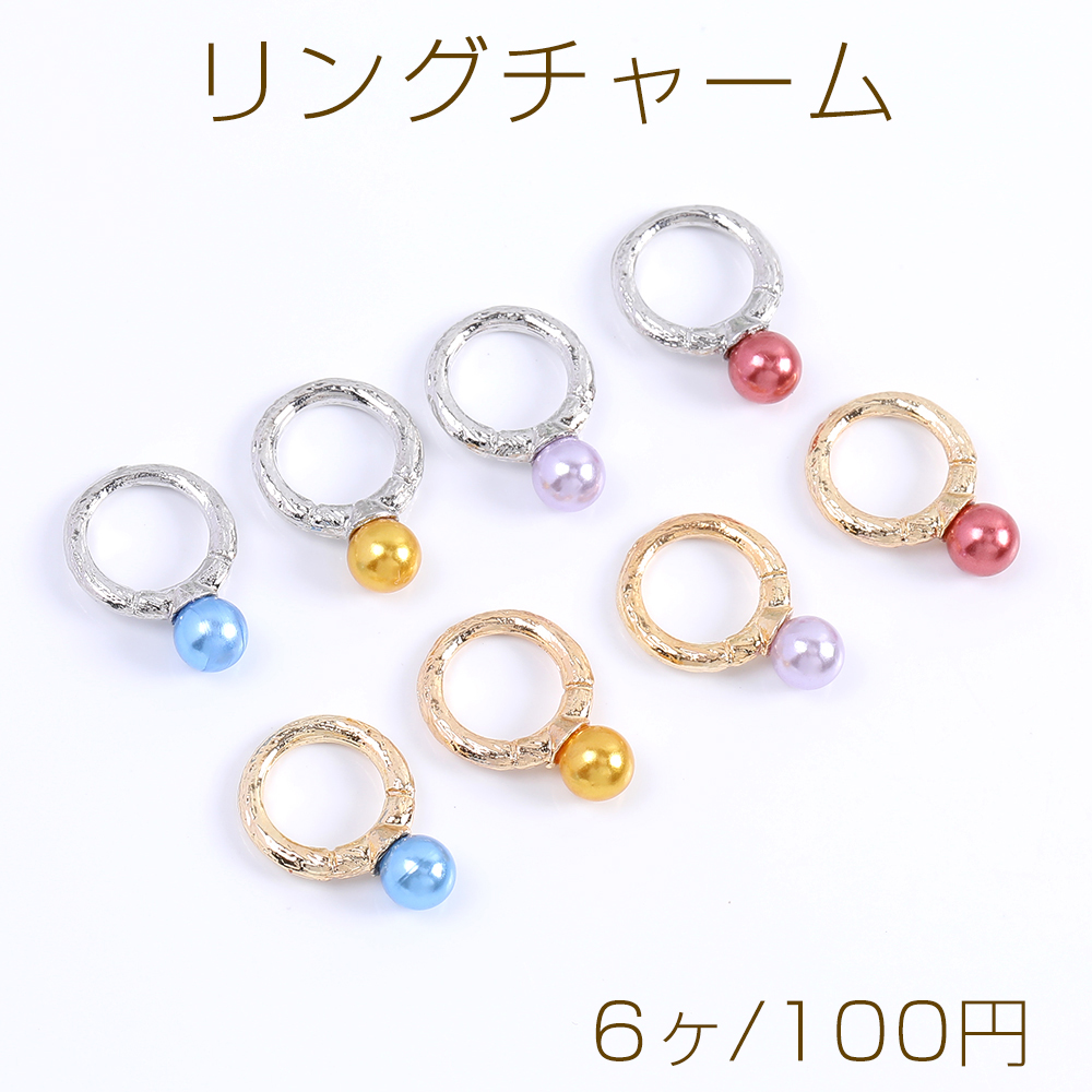 パール付きリングチャーム メタルチャーム 11×16mm(6ヶ)