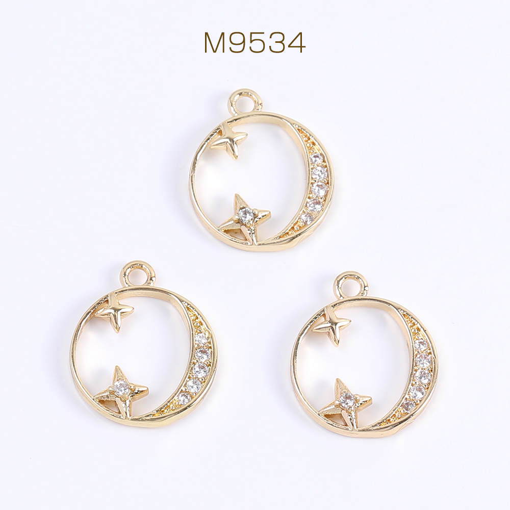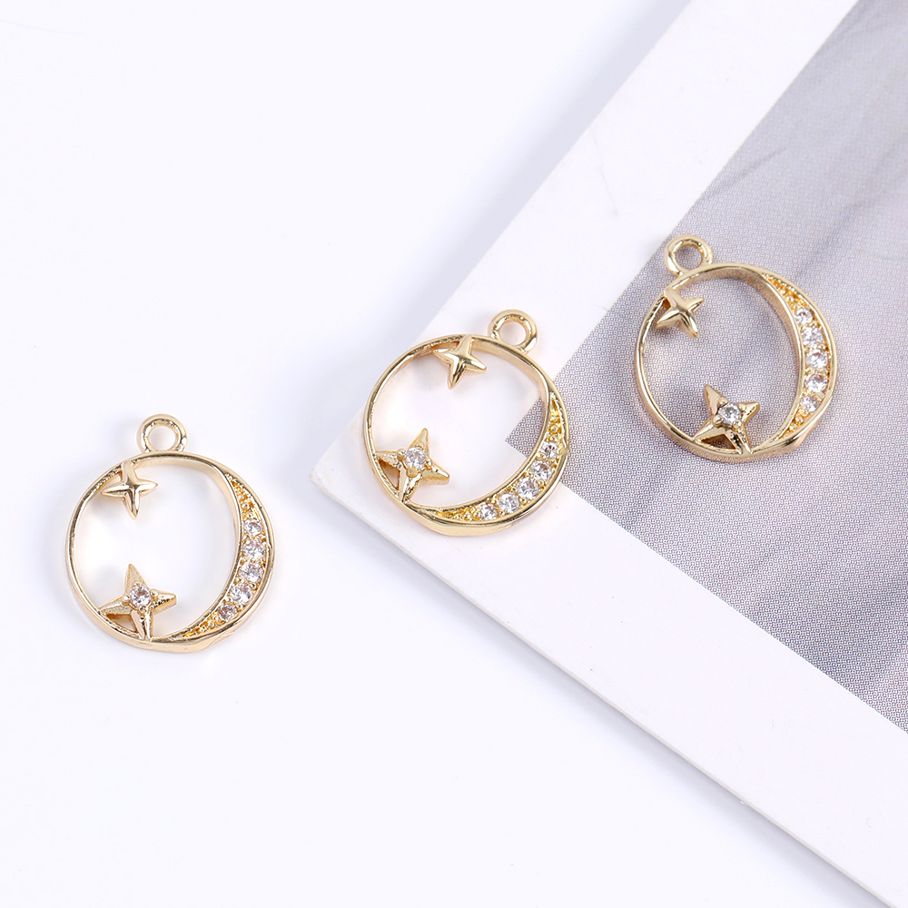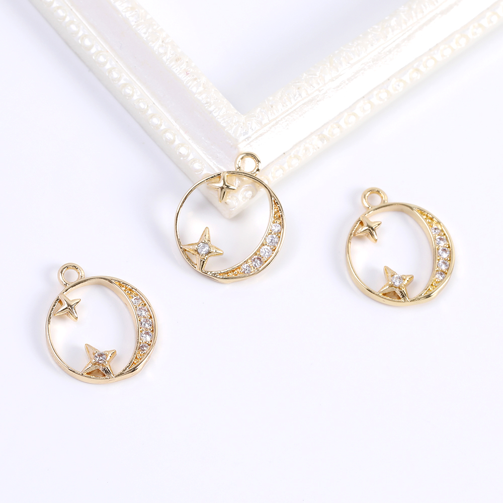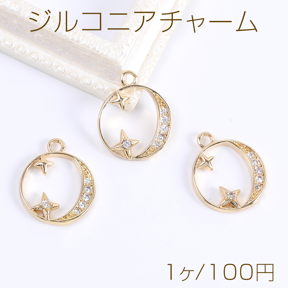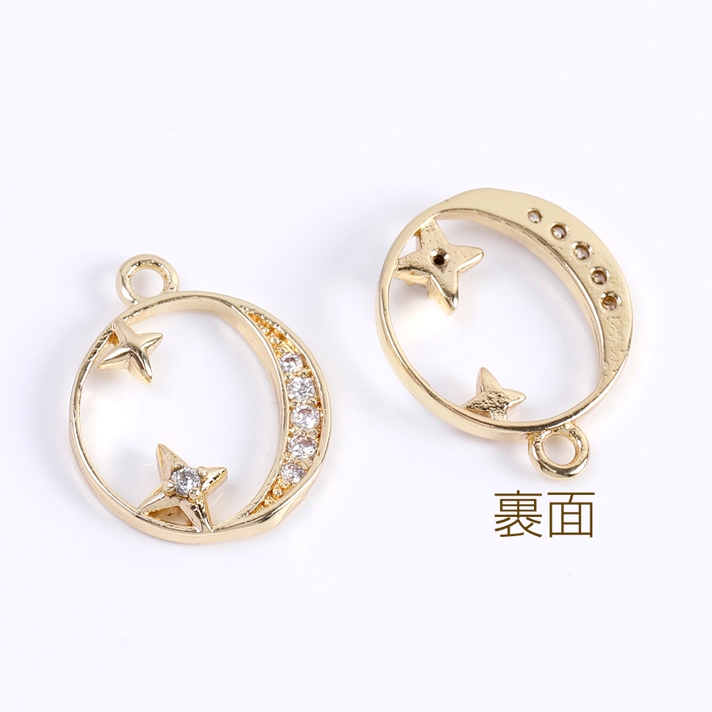 高品質ジルコニアチャーム ラウンド 星と月 11×13mm ゴールド(1ヶ)