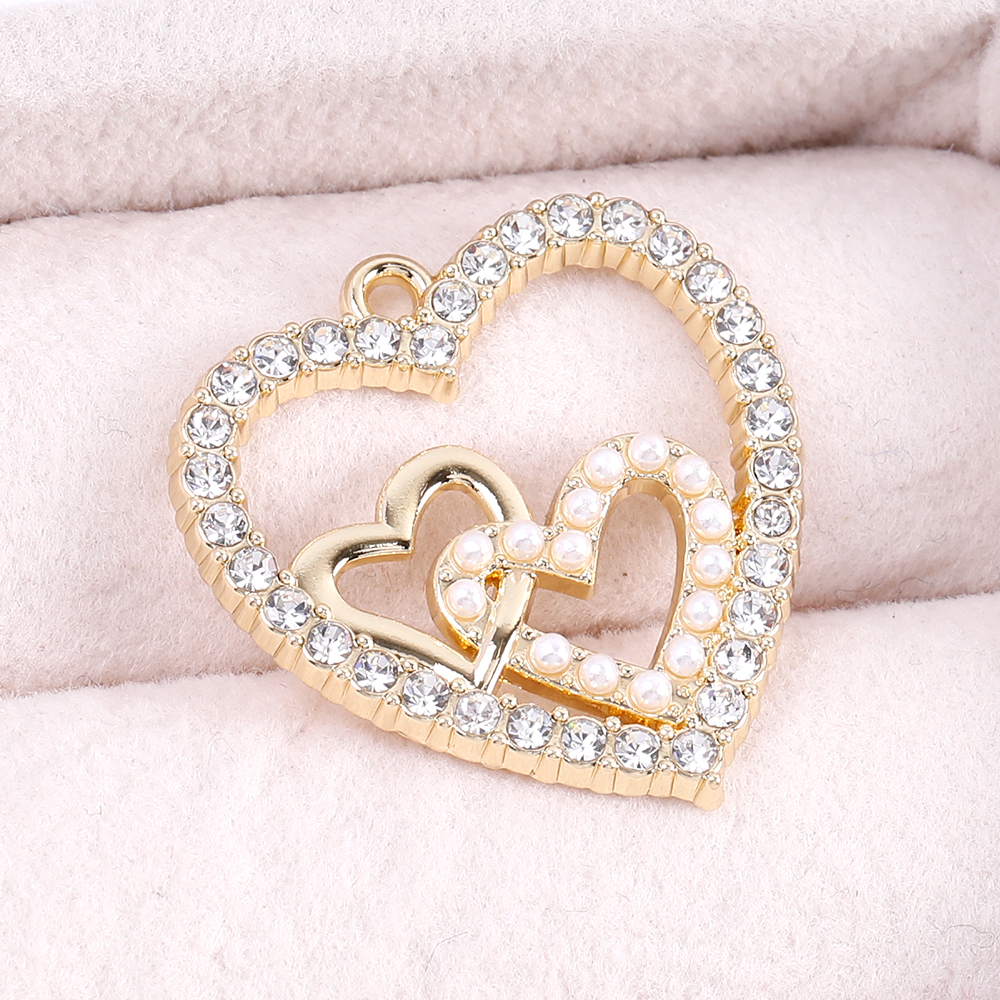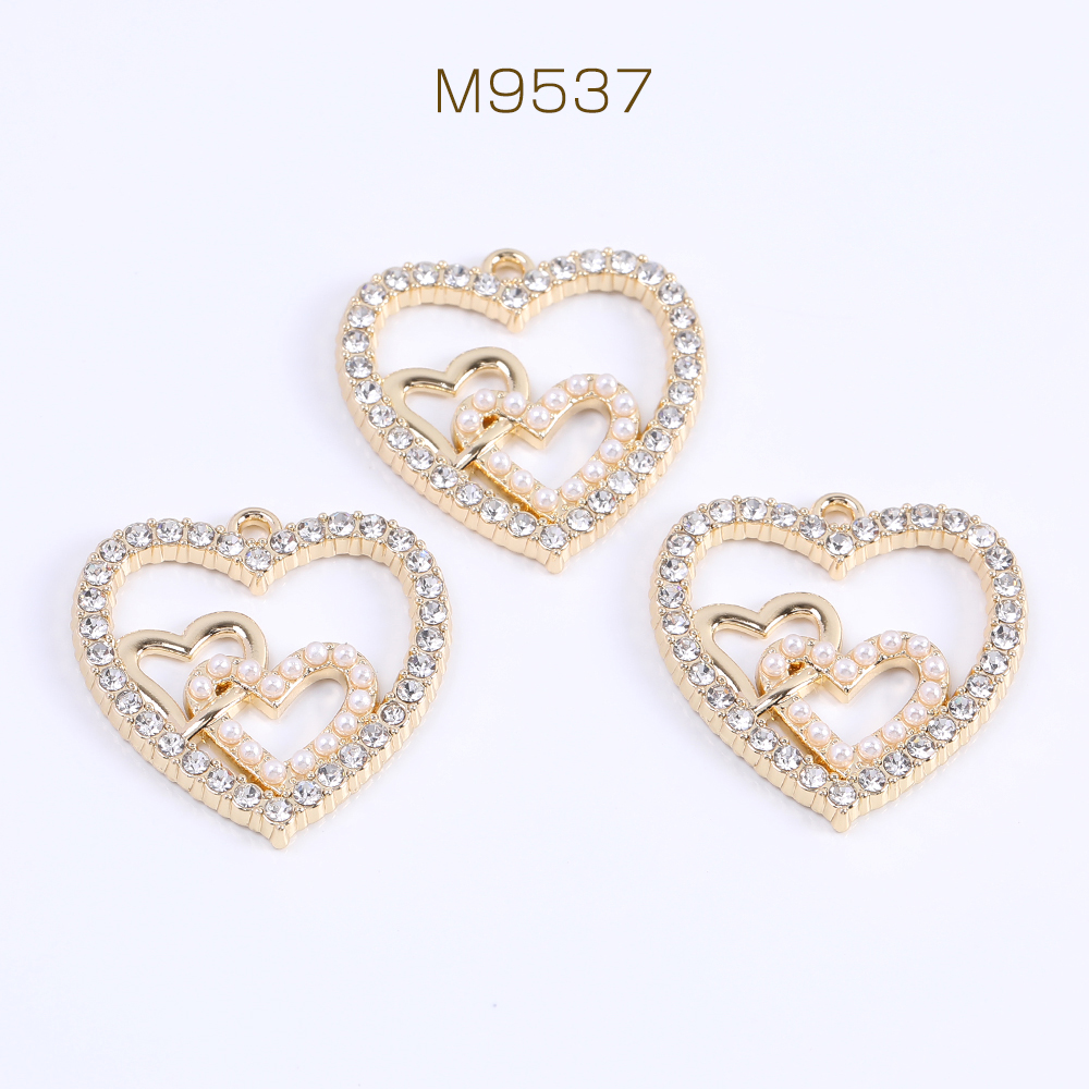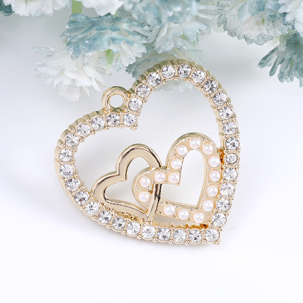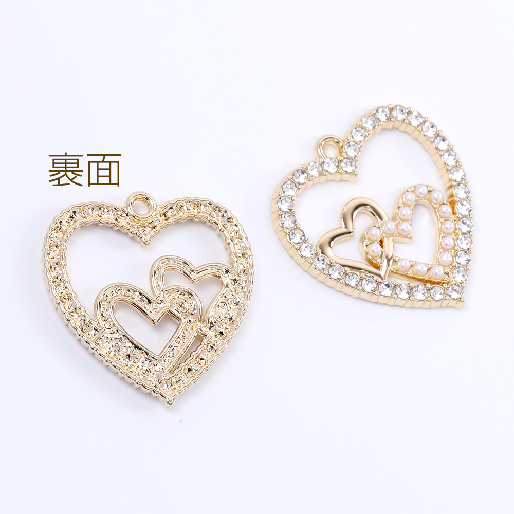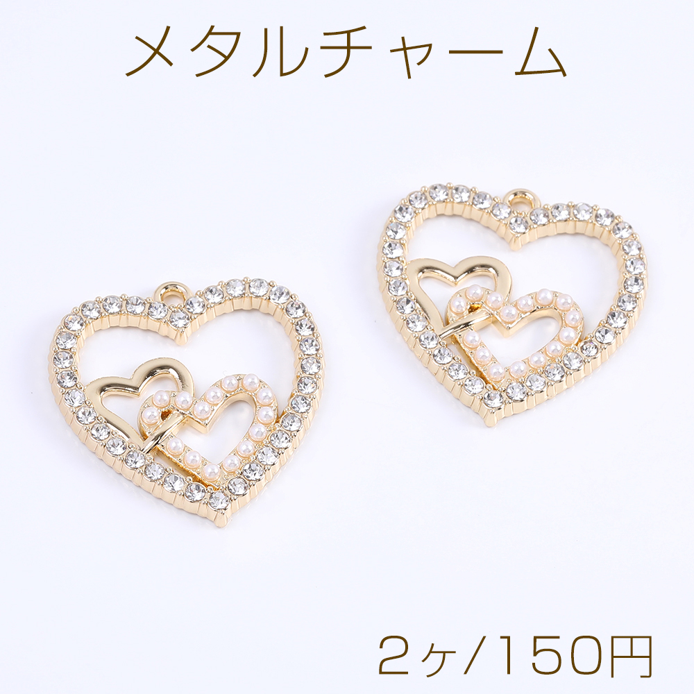 メタルチャーム パール&ラインストーン付き 24×25mm ゴールド(2ヶ)