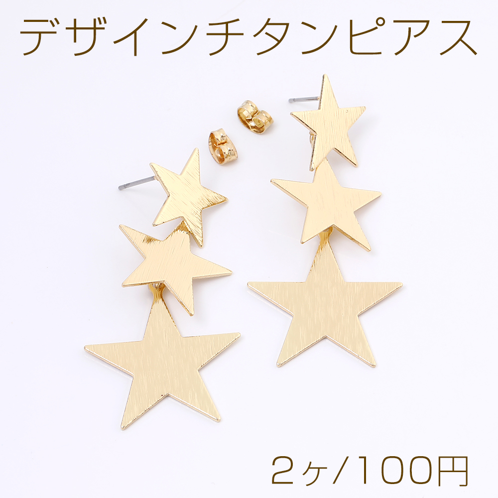 デザインチタンピアス 3連星形 54mm ゴールド(2ヶ)