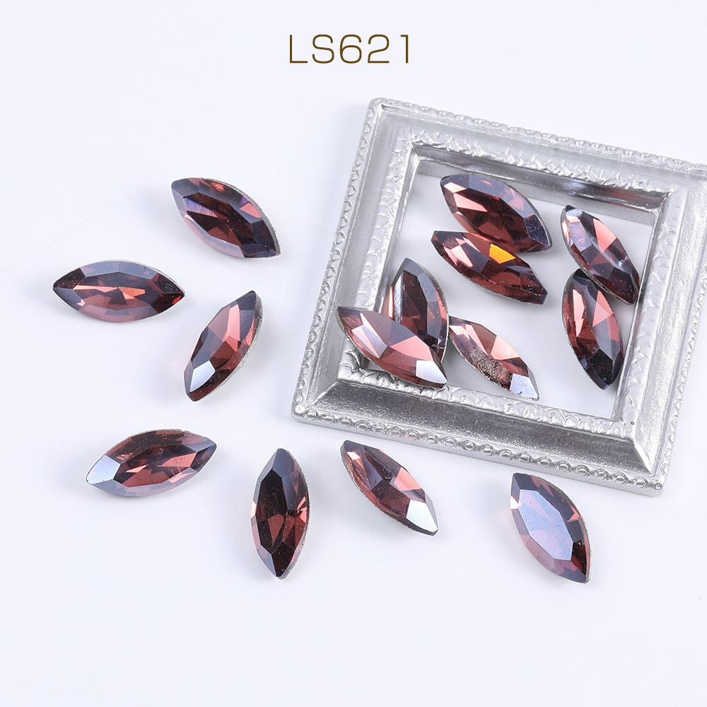 ガラスラインストーン Vカット ホースアイ 7×15mm レッドブラウン(6ヶ)