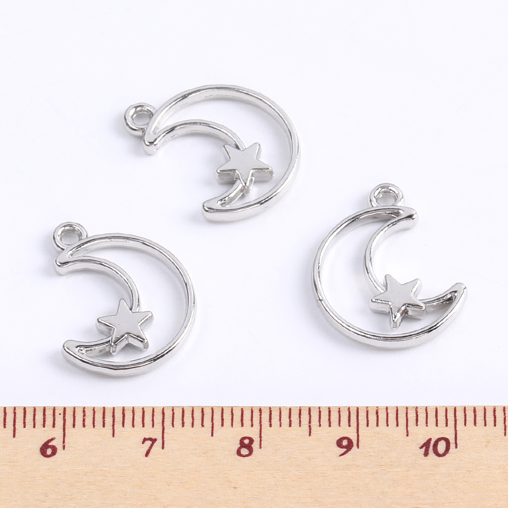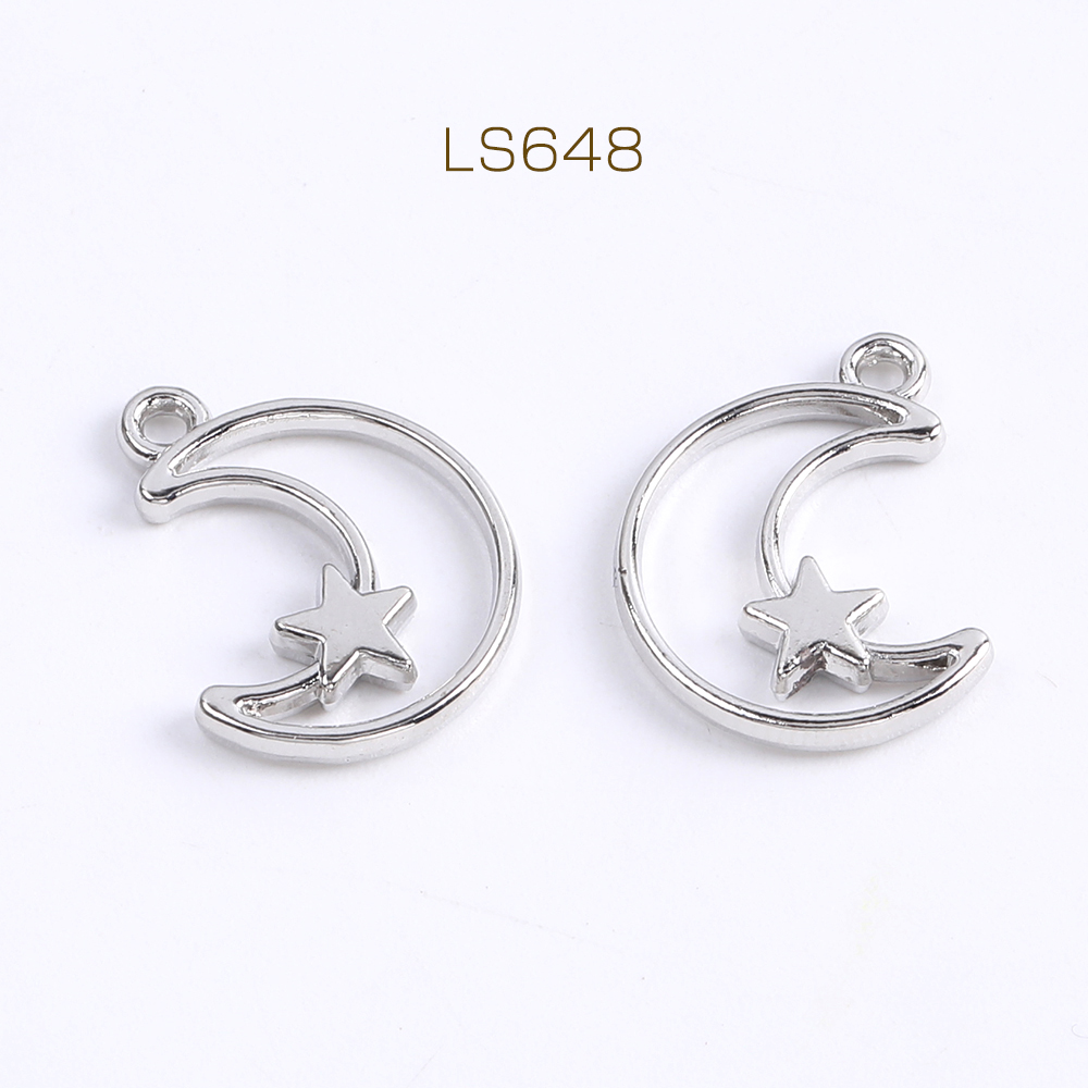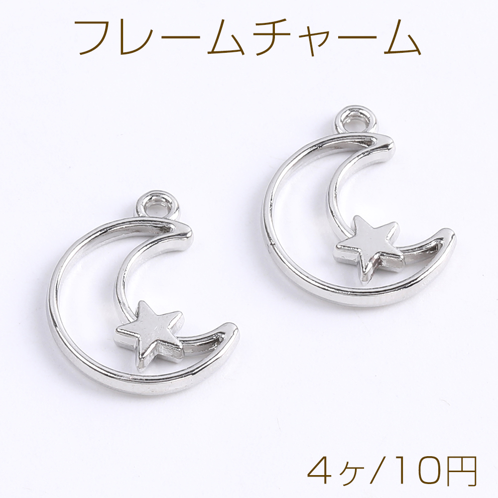 レジンフレームチャーム 星と月 カン付き 14×20mm ロジウム(4ヶ)