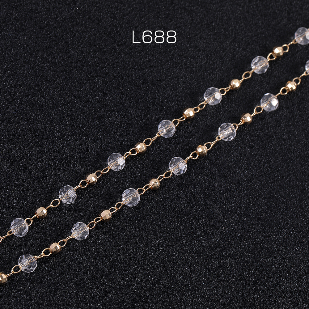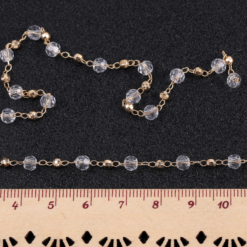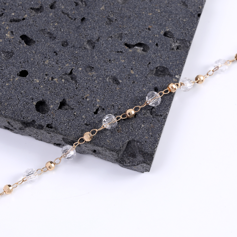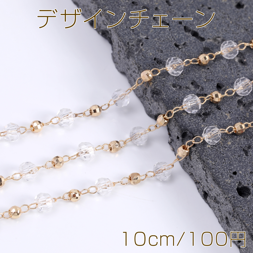 高品質デザインチェーン ガラスビーズ付きチェーン ラウンドカット ゴールド(10cm)