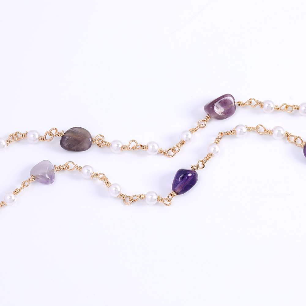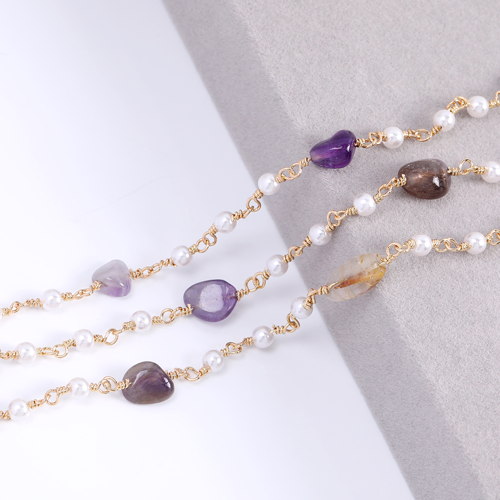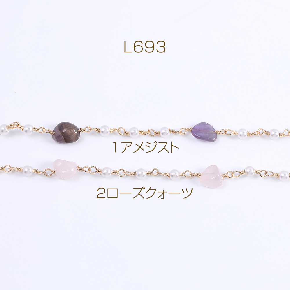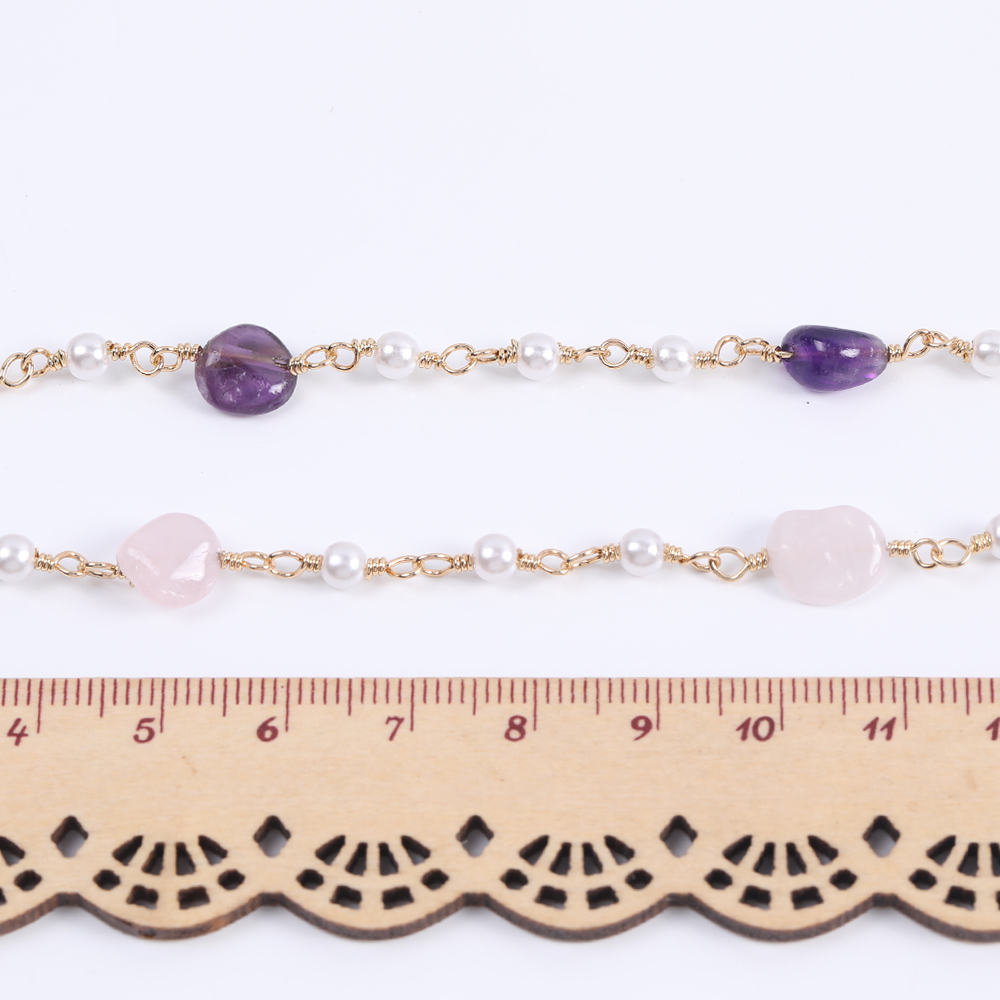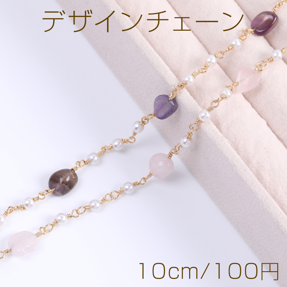 高品質デザインチェーン パール&天然石付きチェーン ゴールド(10cm)