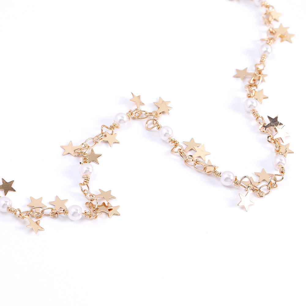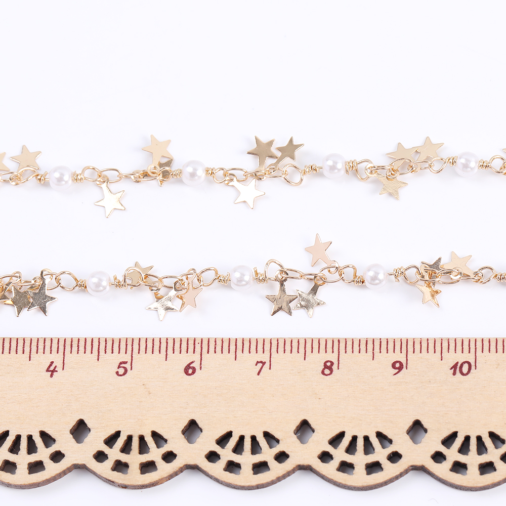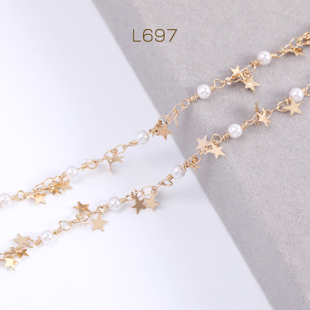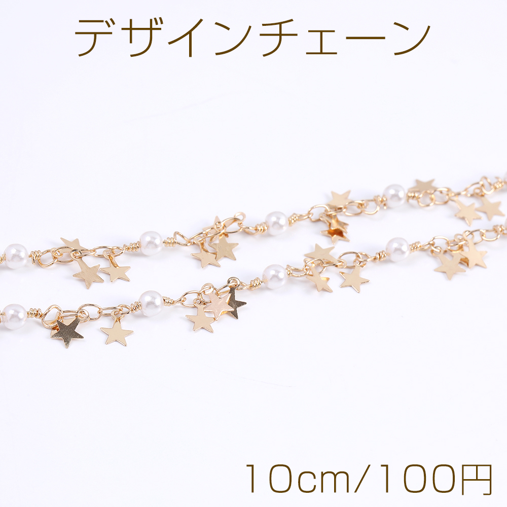 高品質デザインチェーン パール&星形付きチェーン ゴールド(10cm)
