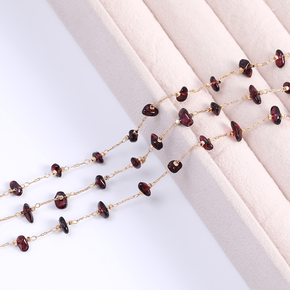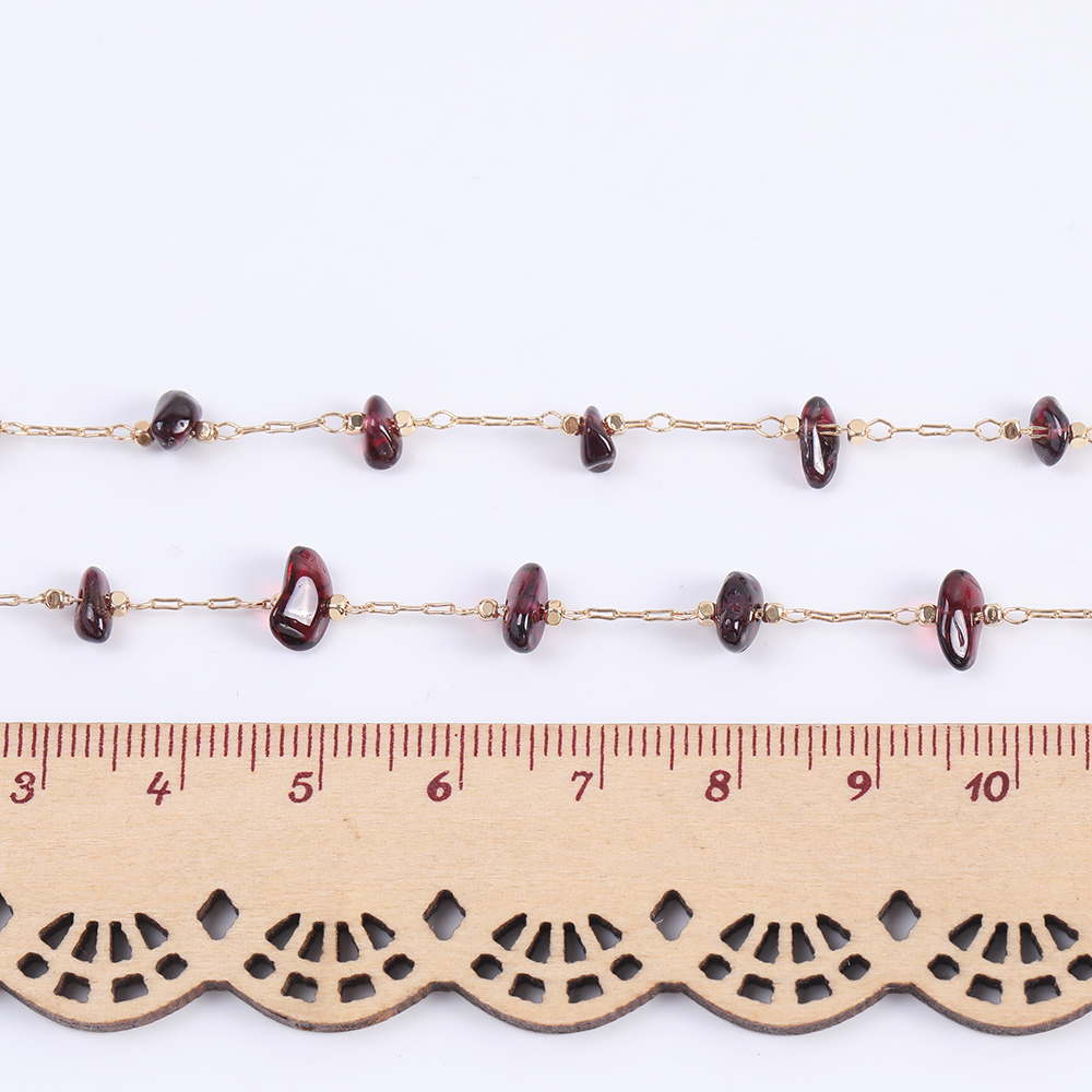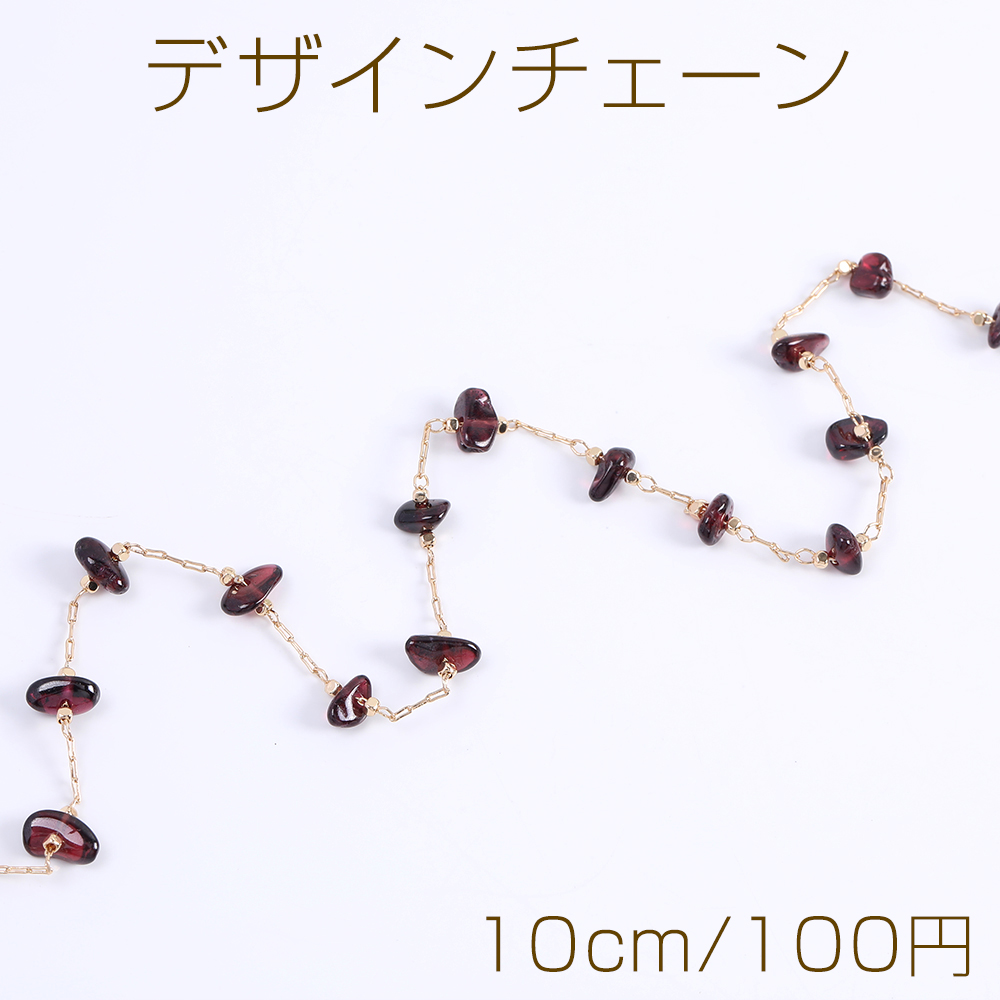 高品質デザインチェーン 天然石チェーン ガーネット ゴールド(10cm)
