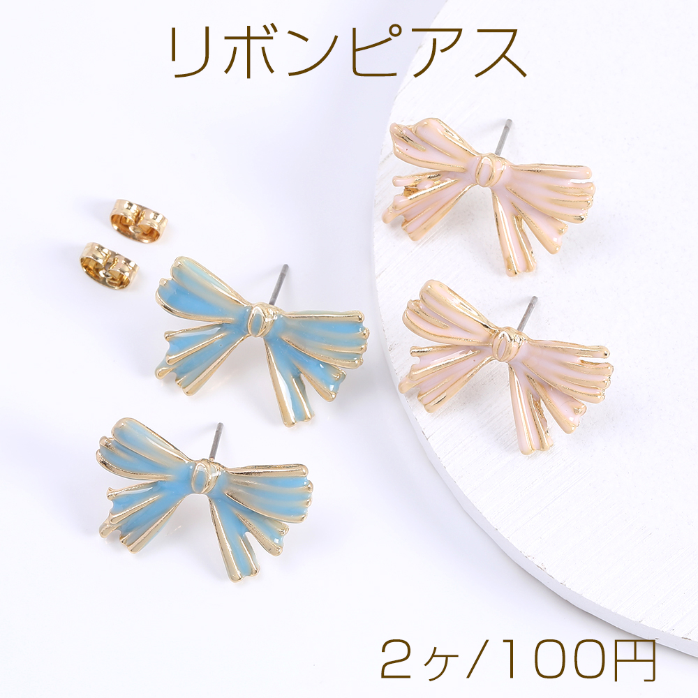 エポ付きリボンピアス デザインチタンピアス 16×24mm ゴールド(2ヶ)