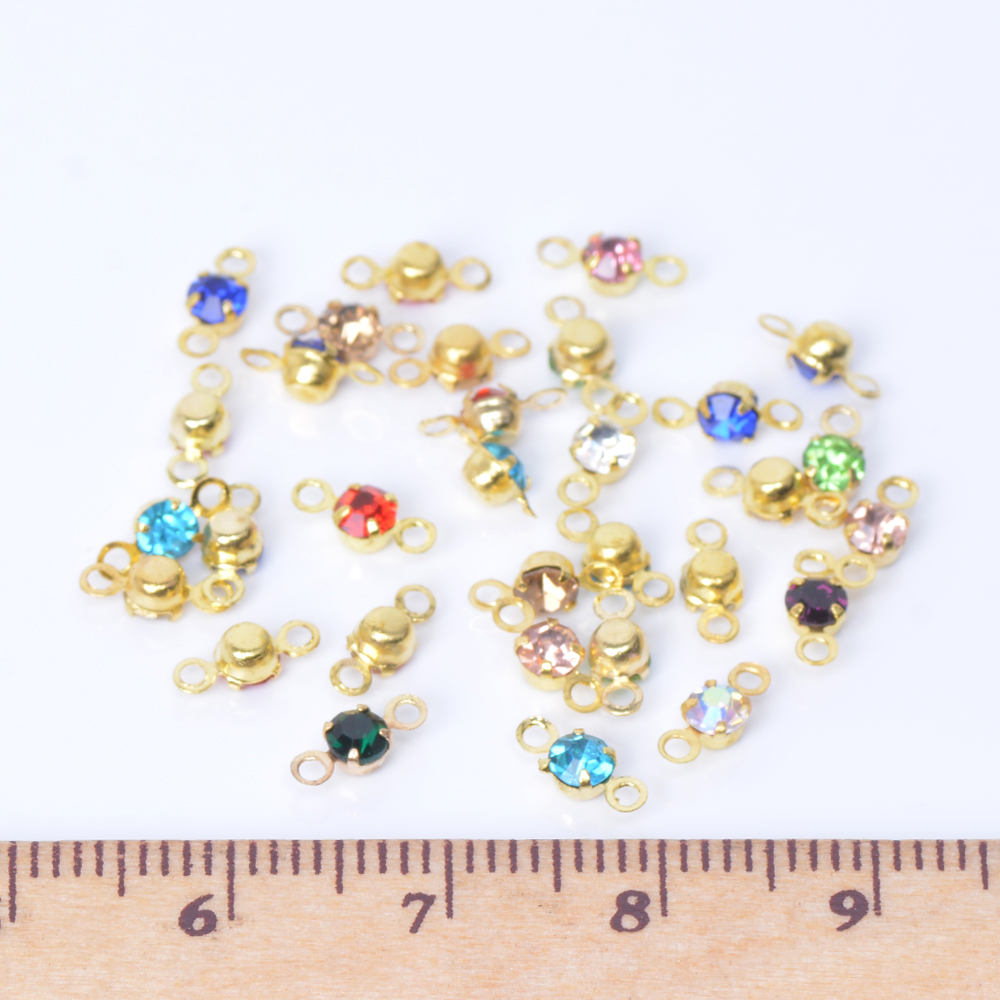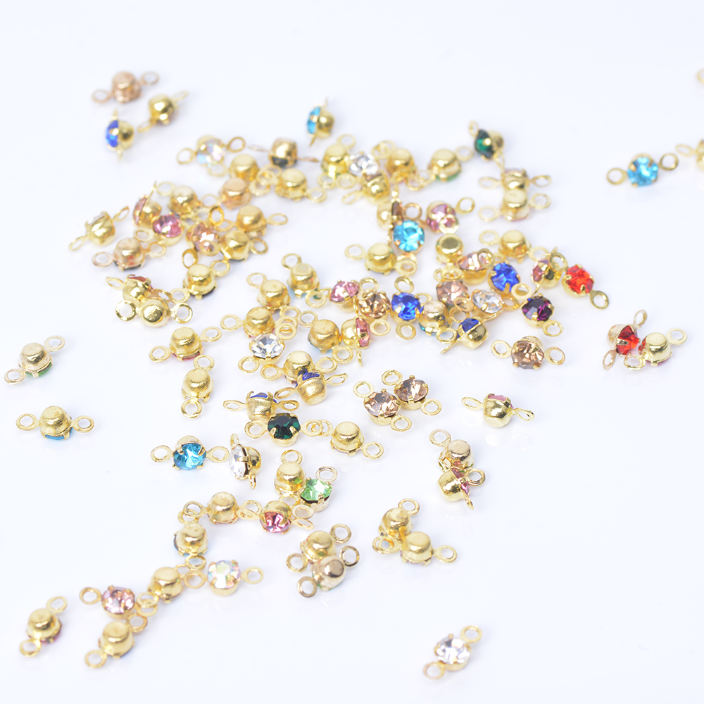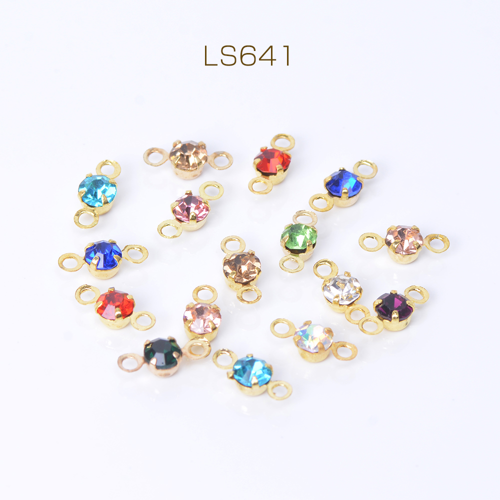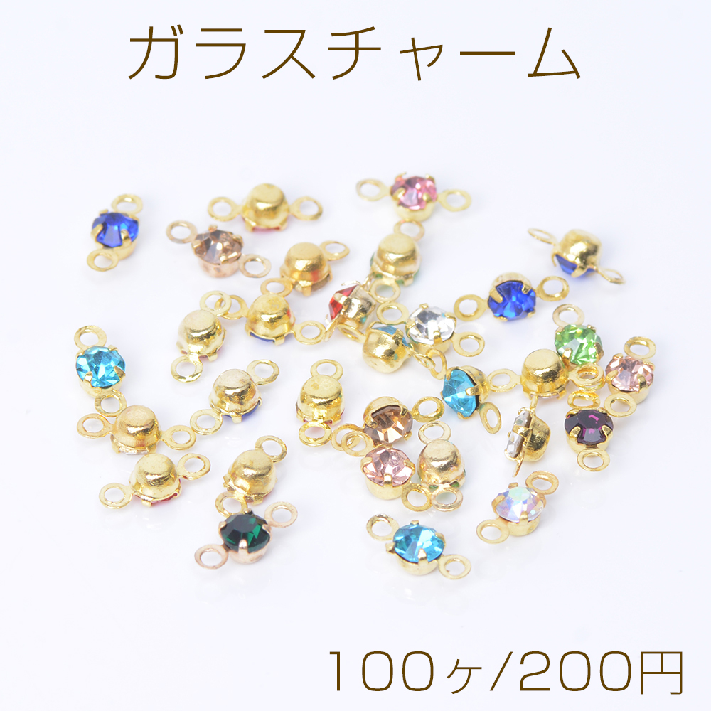 ガラスチャーム ガラスコネクターチャーム ラウンド 3mm 2カン付き ゴールド カラーミックス(100ヶ)