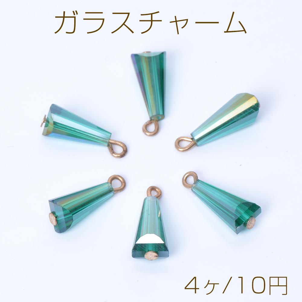 ガラスチャーム ホーン型 6×15mm グリーン(4ヶ)